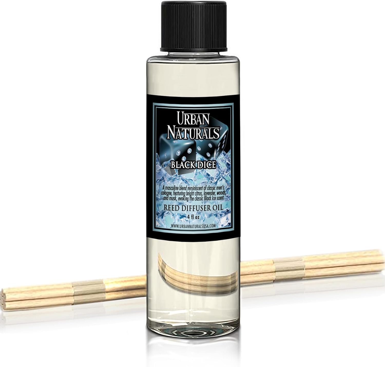 Urban Naturals Black Dice Scented Oil Reed Diffuser Refill | Includes Reed Sticks! 4 oz Masculine Blend of Citrus, Lavender, Woods & Musk | Made in The USA