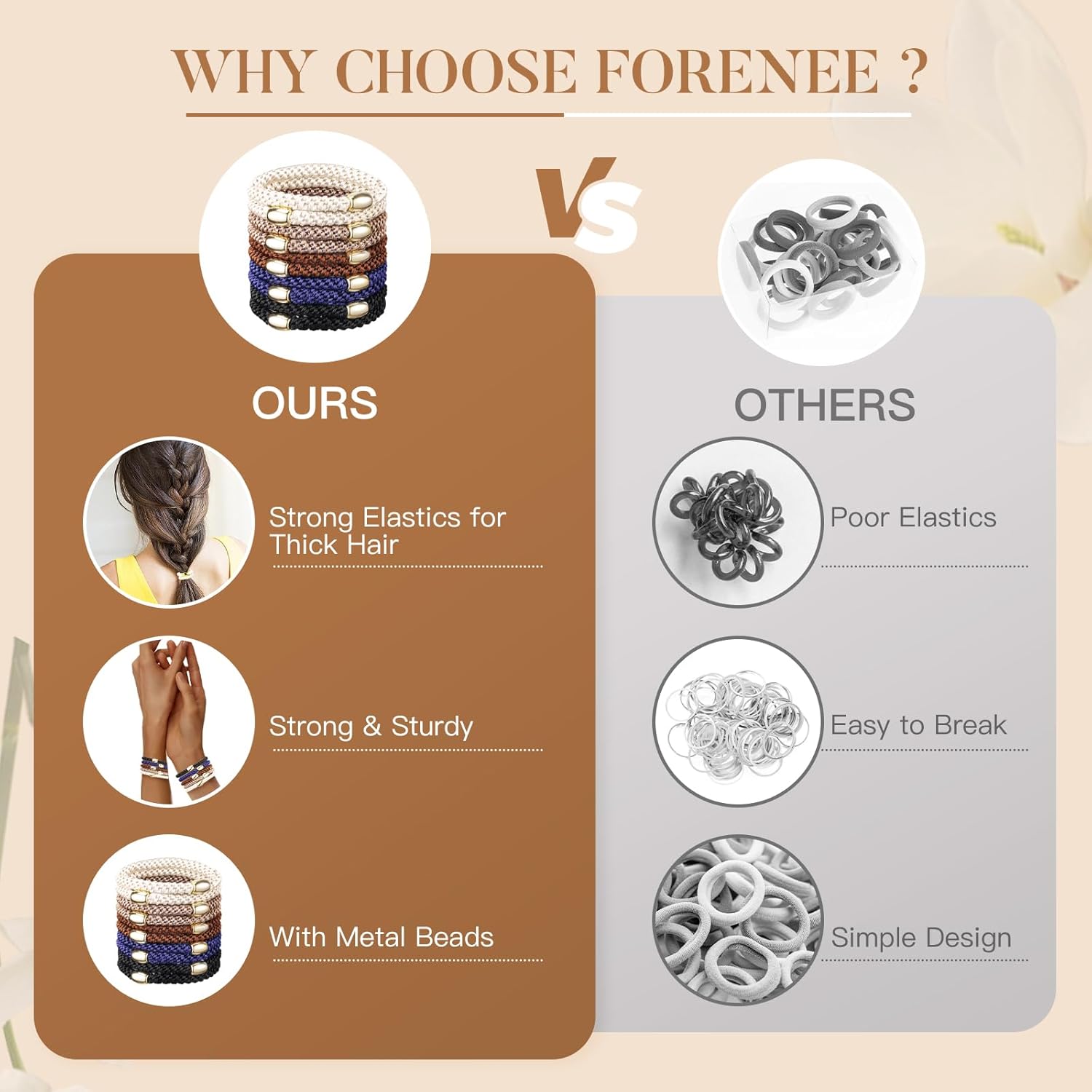 - 【Say Goodbye to Easily Losing Elasticity】Our thick hair ties are 0.3 inches and stretch up to 9 inches.The super elasticity allows you to wrap it around your ponytail 2-3 times, and the elastic hair ties stay in place all day without causing hair damage or loosening.