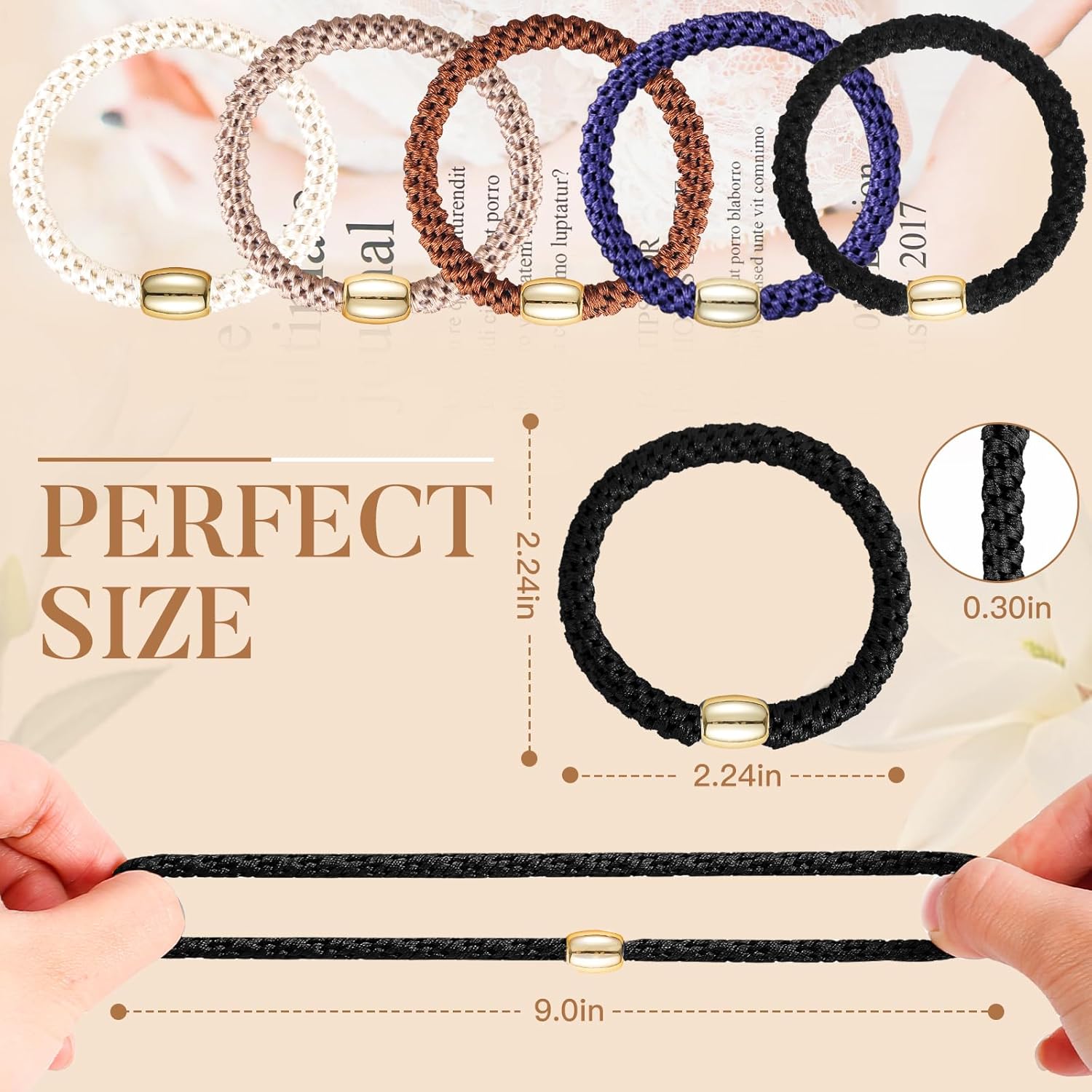 - 【Fashionable Ponytail Holders】Available in a set of 10 pony tails hair ties for women and girls with thick hair for daily use. Adorned with stylish gold decorative beads, these bands add an elegant touch, boosting your hair game with confidence.
