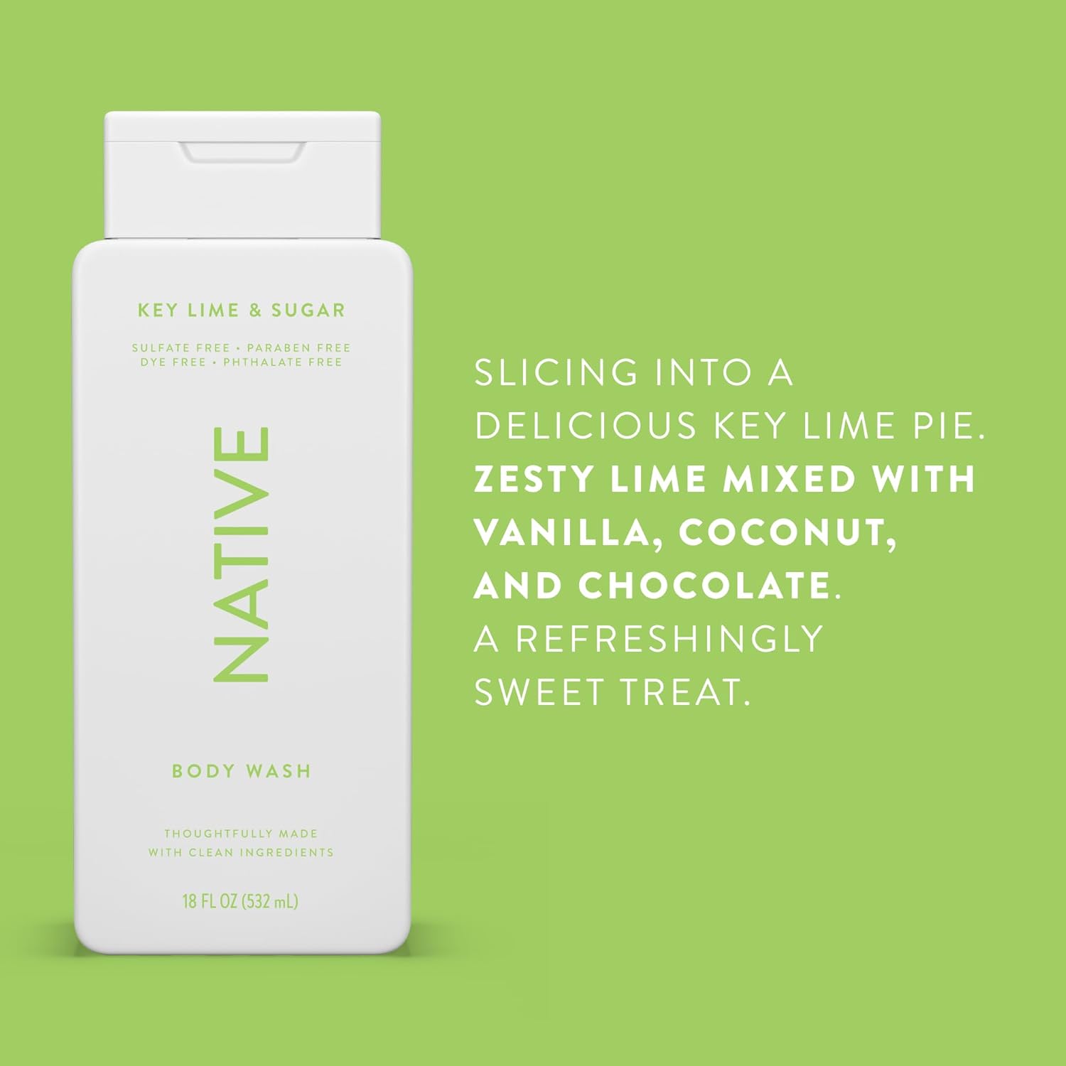 Native Body Wash Contains Naturally Derived Ingredients | For Women & Men, Sulfate, Paraben, & Dye Free Leaving Skin Soft and Hydrating | Key Lime & Sugar 18 oz - 2 Pk