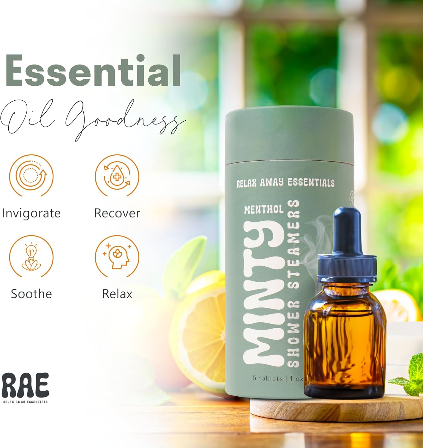- Minty Shower Steamers 6 Pack: Enjoy menthol-infused blends like Orange Menthol for energy, Eucalyptus Menthol for clarity, Lavender Menthol for relaxation, Peppermint Menthol for invigoration, Grapefruit Menthol for refreshment, and Spearmint Menthol for cooling relief.