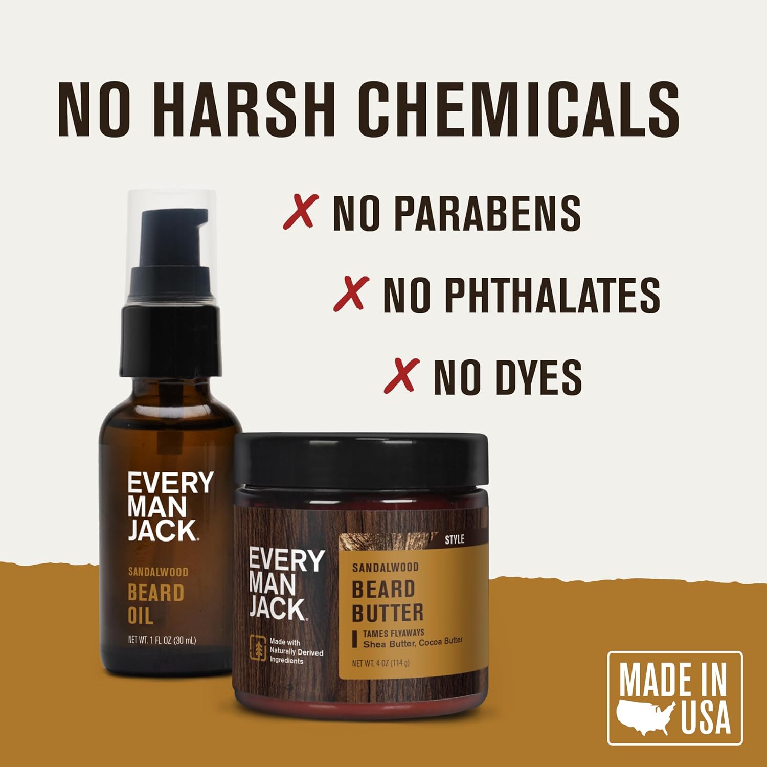 Every Man Jack Beard Oil & Beard Butter Bundle - Sandalwood Fragrance - Rejuvenates, Hydrates & Styles Dry Beards - Naturally Derived with Cocoa Butter and Shea Butter