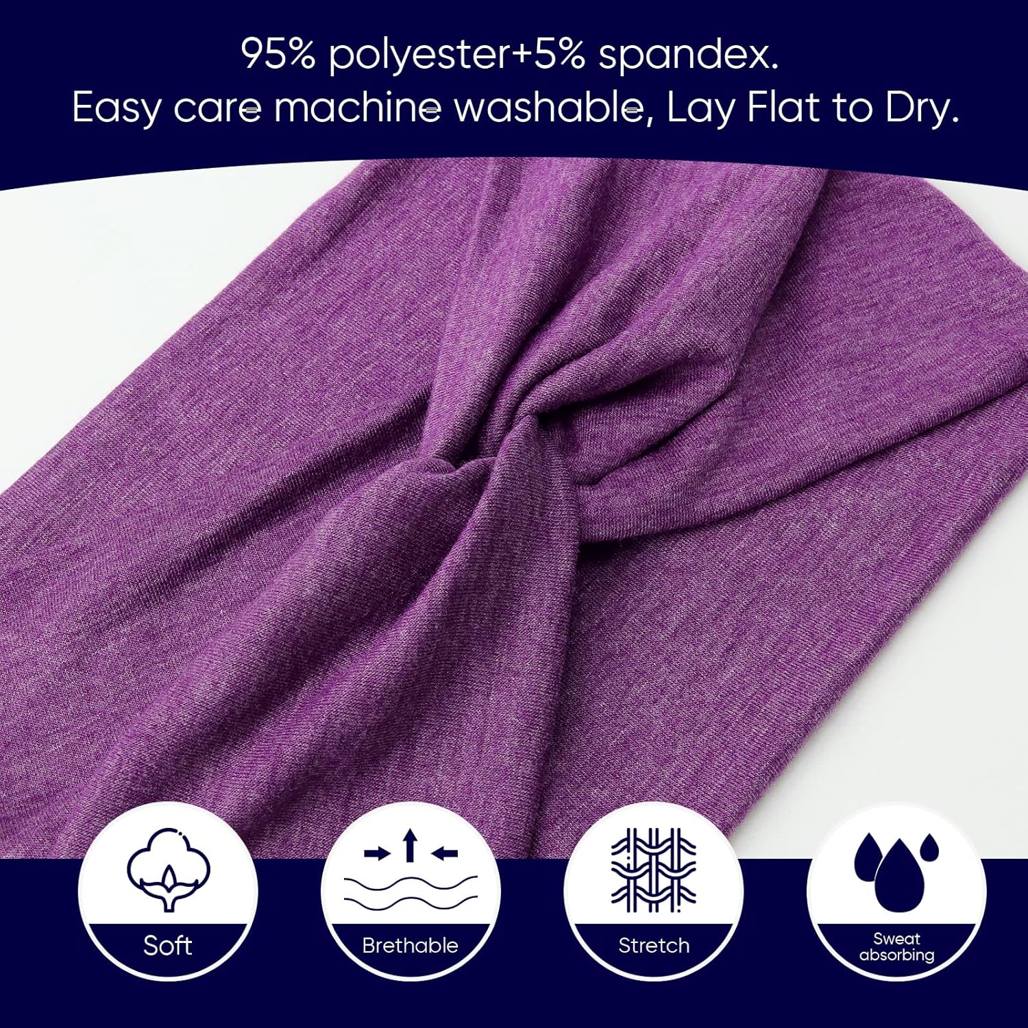 - Premium Material: Women's hairbands are made of cotton, polyester and high-stretch spandex, making them soft and skin-friendly, with excellent performance in water absorption, sweat absorption, durability and abrasion resistance, allowing you to wear them all day long without getting a headache.
