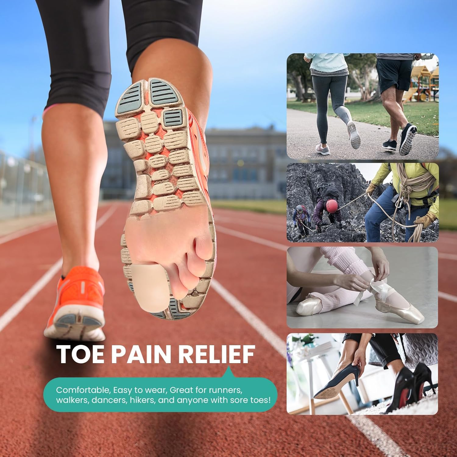 - Comfortable Wear: These gel toe covers are very lightweight and soft, which makes them comfortable to wear all day long. The toe protectors can be worn with most shoes including flats, high heels, sports or walking shoes but also during sleeping without feeling discomfort.