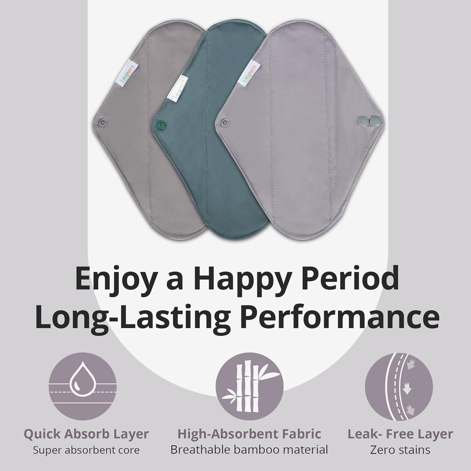 - Reusable Sanitary Pads: Charcoal infused reusable feminine pads capture heavy flow for up to 10 hours making our reusable sanitary pads better for overnight use than period panties, post partum maxi pads, disposable sanitary napkins, panty liners with wings, tampons, a menstrual period cup and even washable cloth incontinence pads for women.