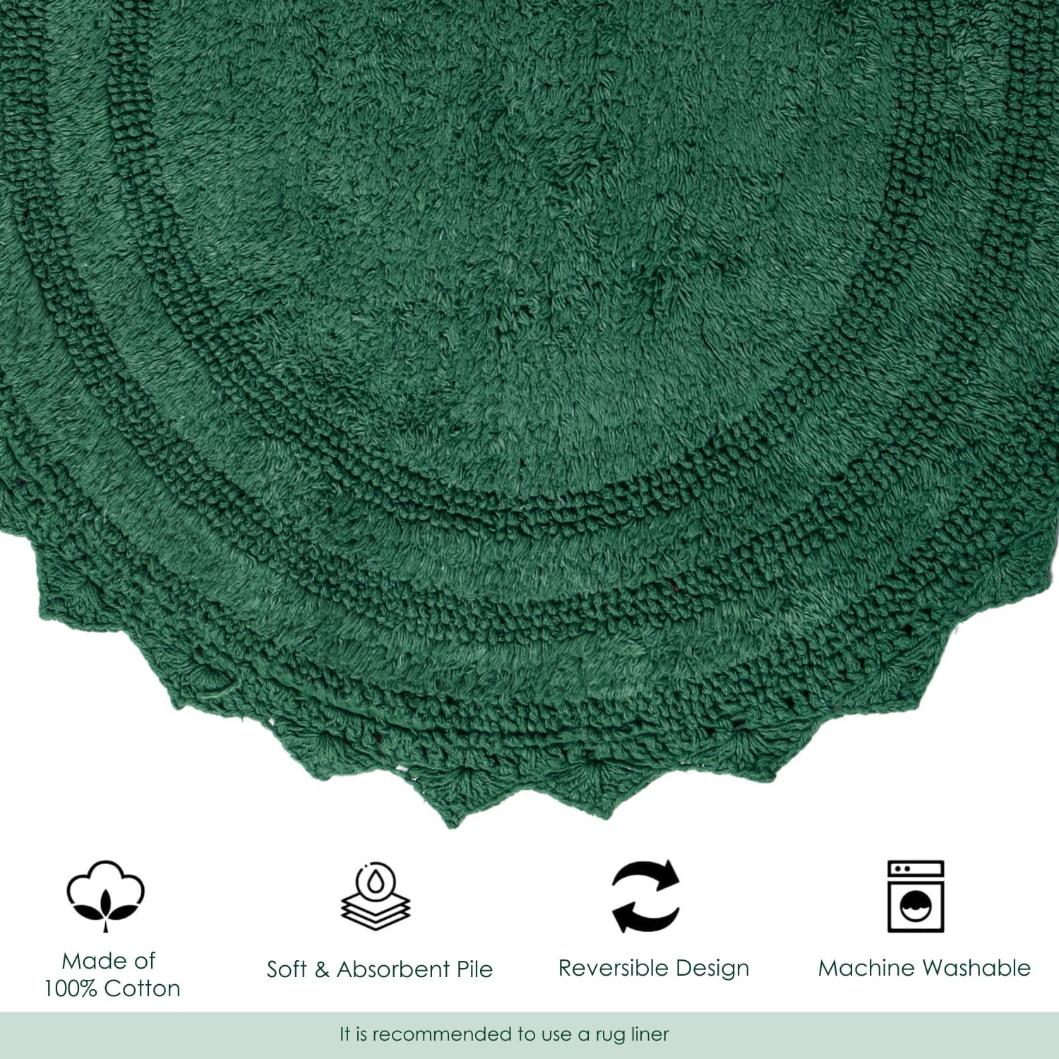RAJRANG Foliage Green Cotton Bath Rug | Oval 24x17 Inches with Crochet Trim | Soft Reversible Bathroom Mat for Modern, Rustic, or Boho Interiors