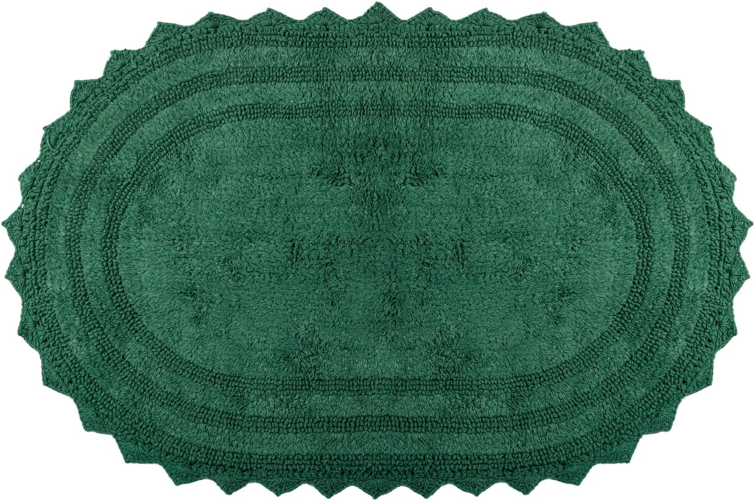 RAJRANG Foliage Green Oval Cotton Bath Mat – 34x21 Inch Reversible Crochet Bathroom Rug – Soft, Absorbent, Handmade Boho Rug for Spa, Kitchen, or Entryway
