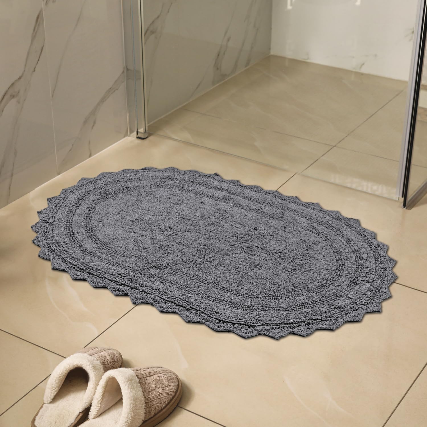 RAJRANG Grey Oval Crochet Bath Rug | 24x17 Inches Cotton Reversible Mat for Bathroom, Kitchen or Spa | Soft, Absorbent, Boho-Inspired Home Accent