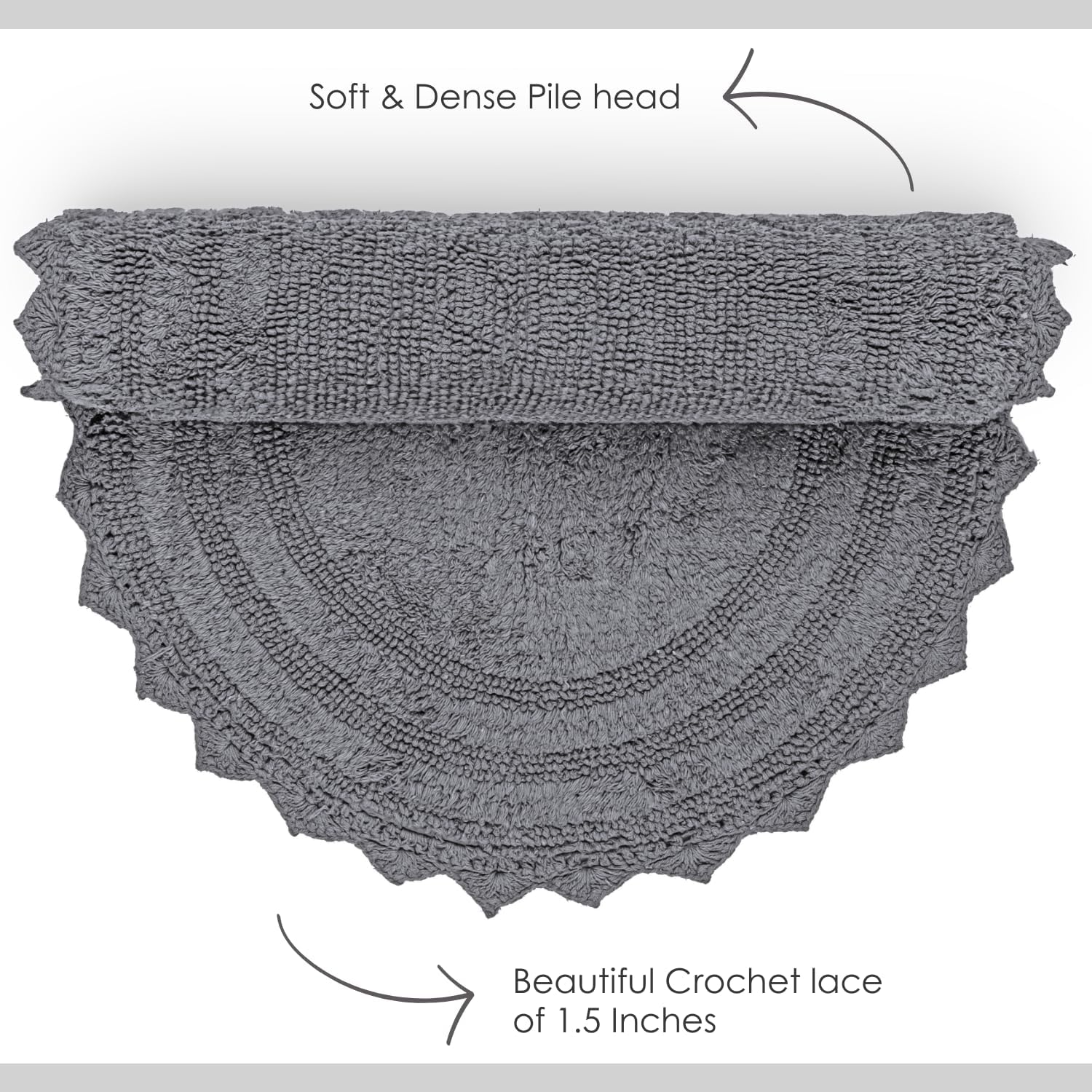 RAJRANG Titanium Grey Oval Cotton Bath Rug 34x21 Inches | Reversible Soft Absorbent Bathroom Mat with Crochet Border | Boho Handwoven Rug for Spa, Kitchen, or Vanity