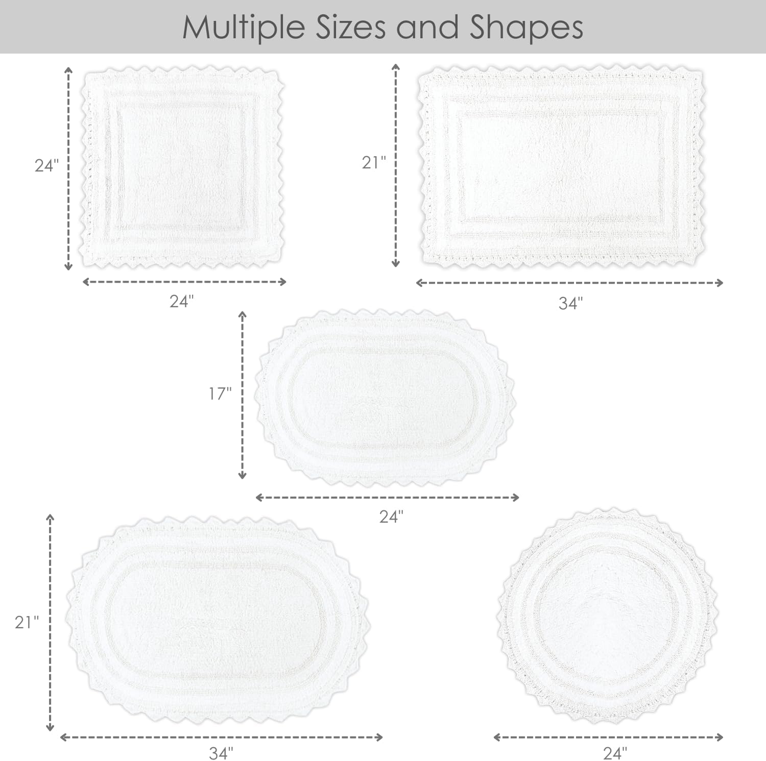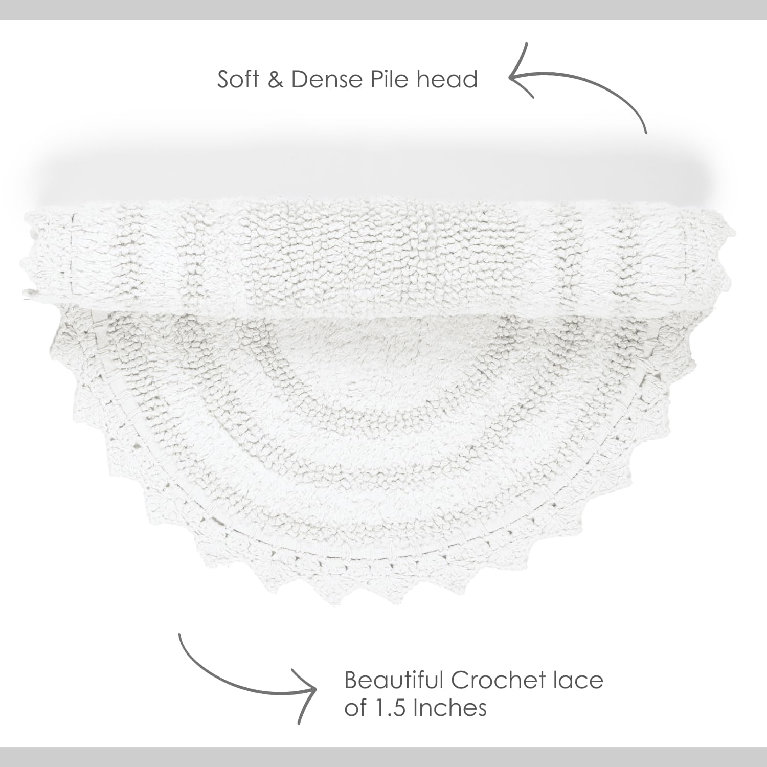 - Oval Size with Crochet Border – Measures 21x34 inches with handcrafted crochet lace edging; ideal for sink fronts, bathtubs, or compact bathroom spaces.