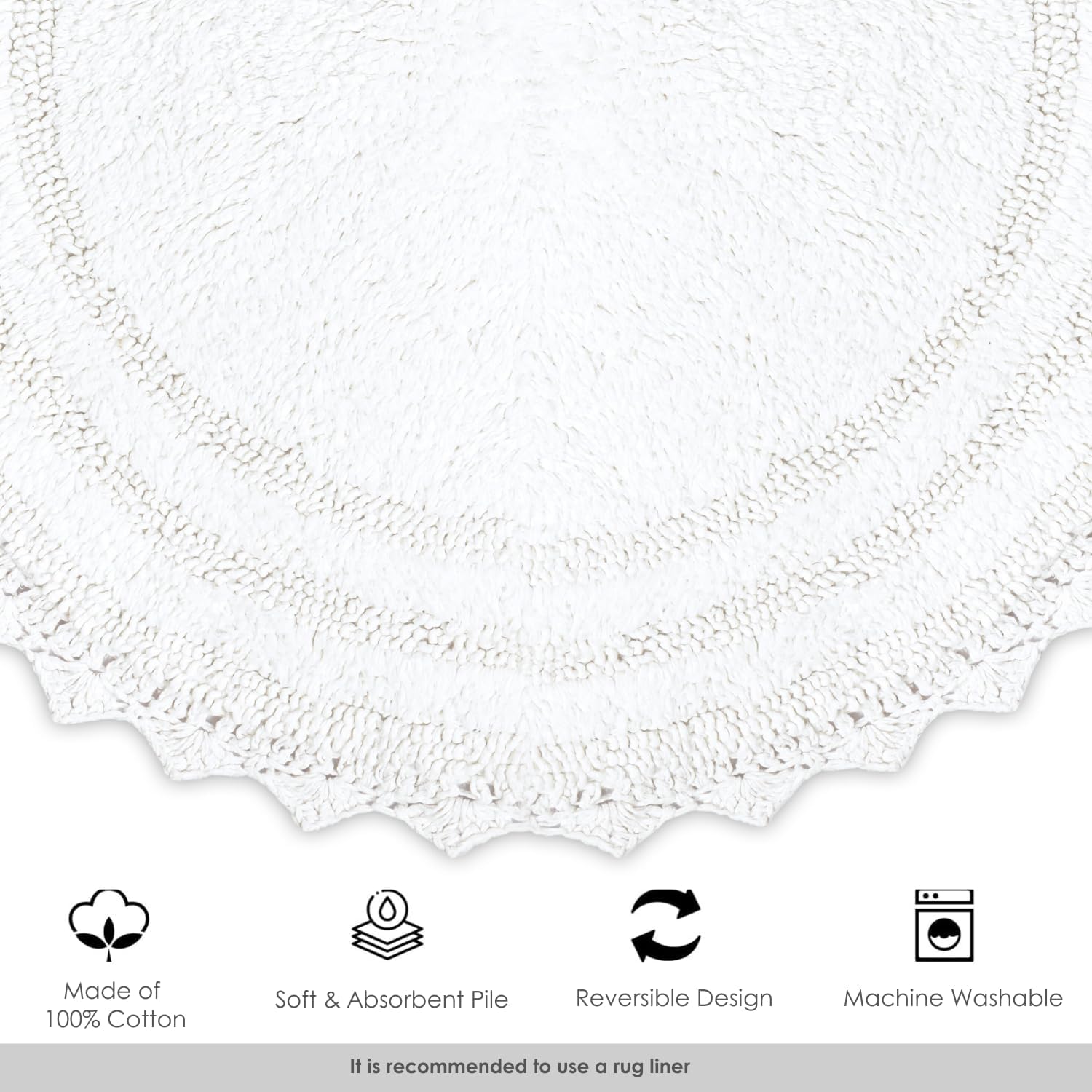 RAJRANG White Cotton Bathroom Rug Oval 21x34 Inch – Reversible Crochet Bath Mat for Bathroom, Entryway or Kitchen – Soft & Washable