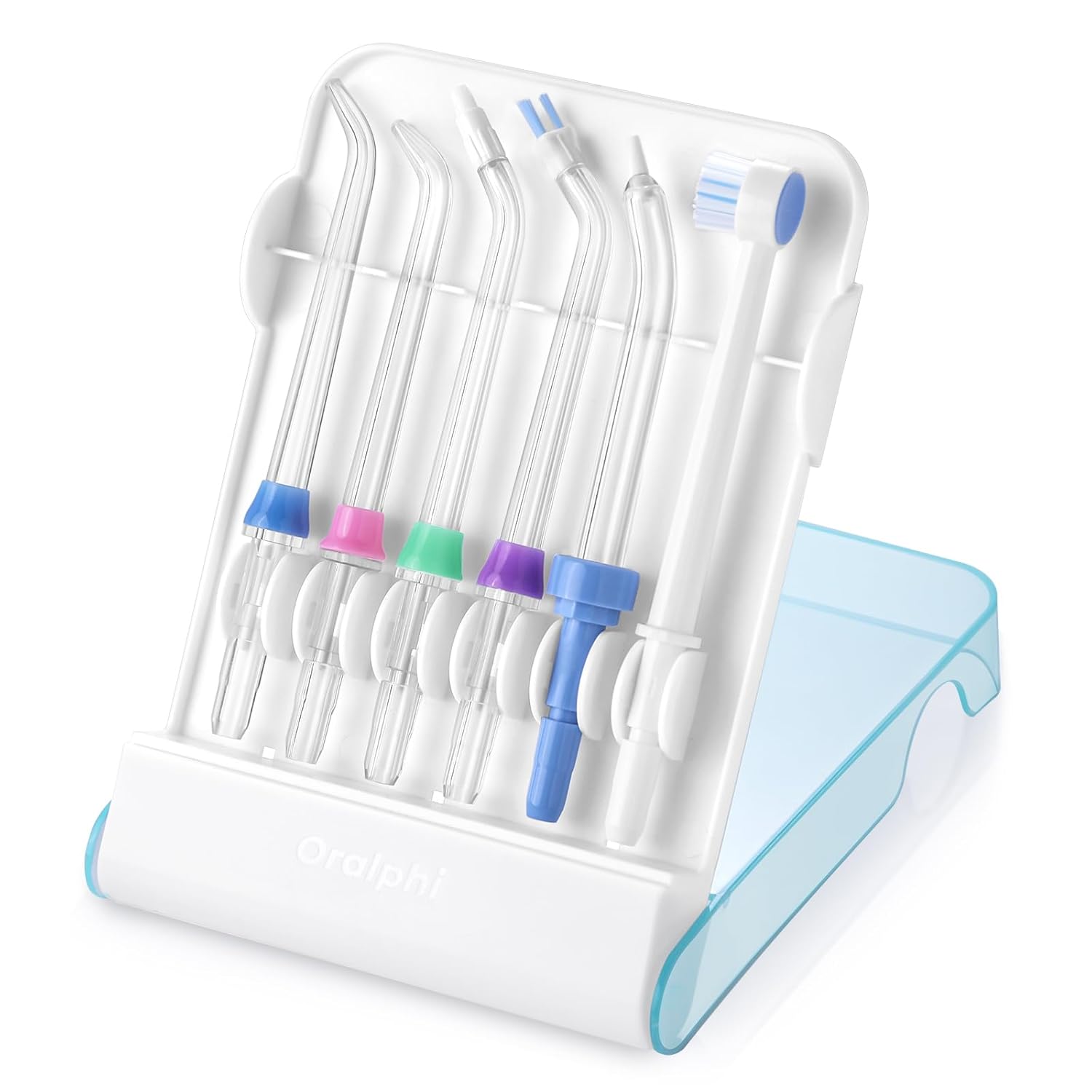 - Unique Design Water Flosser Tips Storage Case: Hygienic and convenient storage case features an easy-open and hinged flip top. It can be flipped into a stand to place on the countertop. You can also close the lid and put it into your travel bag. Moreover, the space has been upgraded to accommodate any style of 6pcs nozzles.