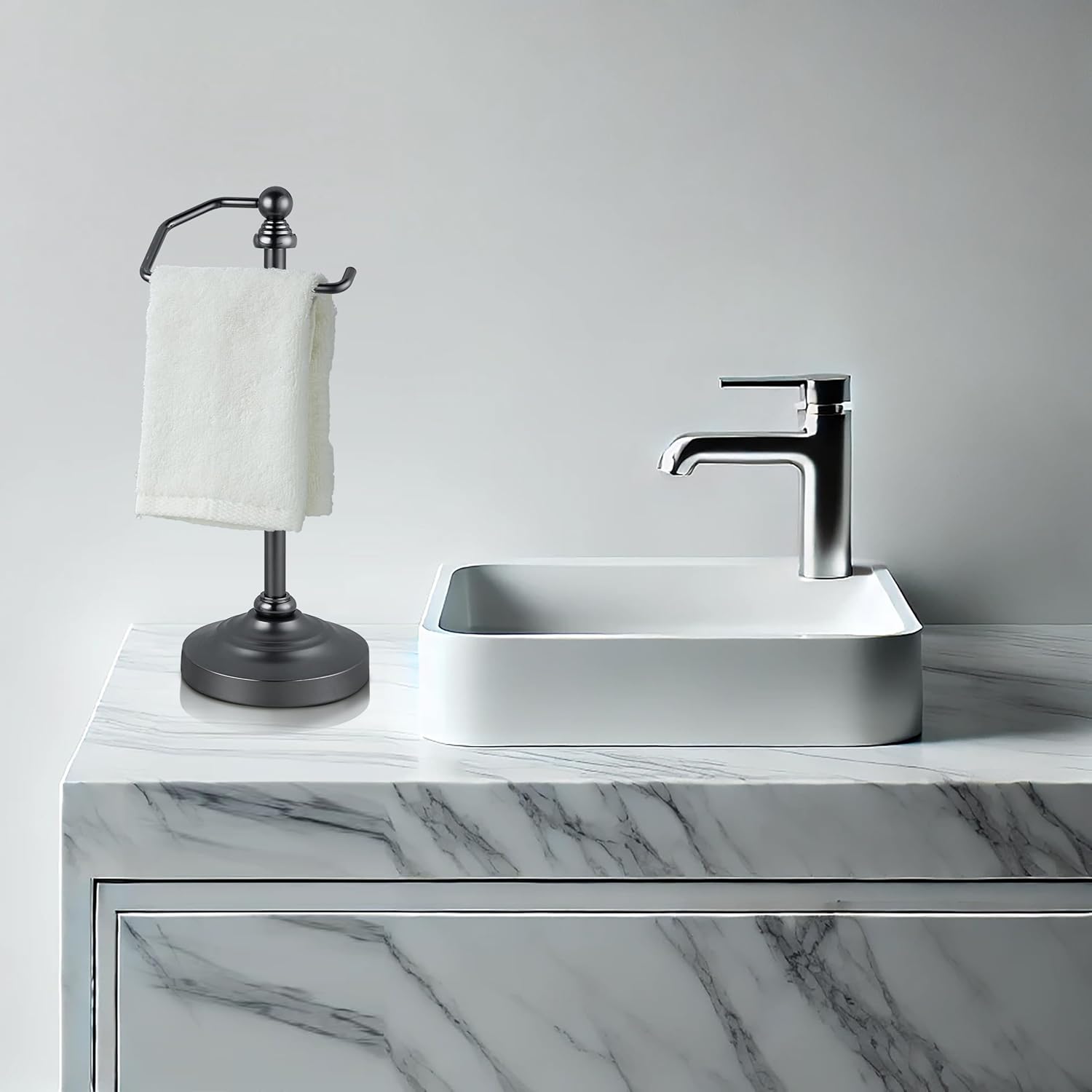 - The steel fingertip towel holder is great for displaying and drying a fingertip, guest towels along side your sink. Ideal for master bathroom, kids bathroom, guest bathroom, vanity counters, or kitchen countertops