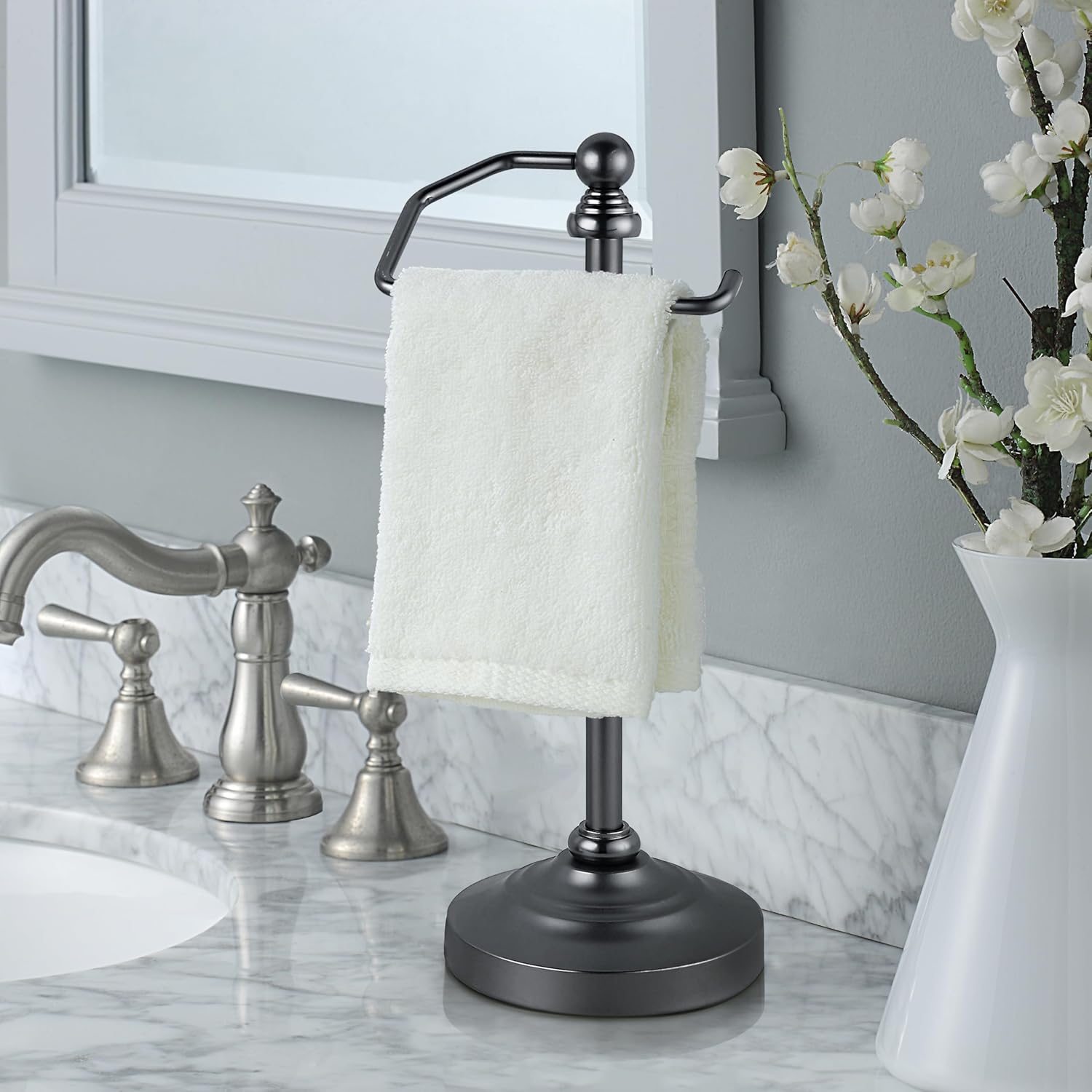 SunnyPoint Deluxe Free Standing Heavy Weighted Countertop Fingertip Towel Holder Stand (Black Nickel)