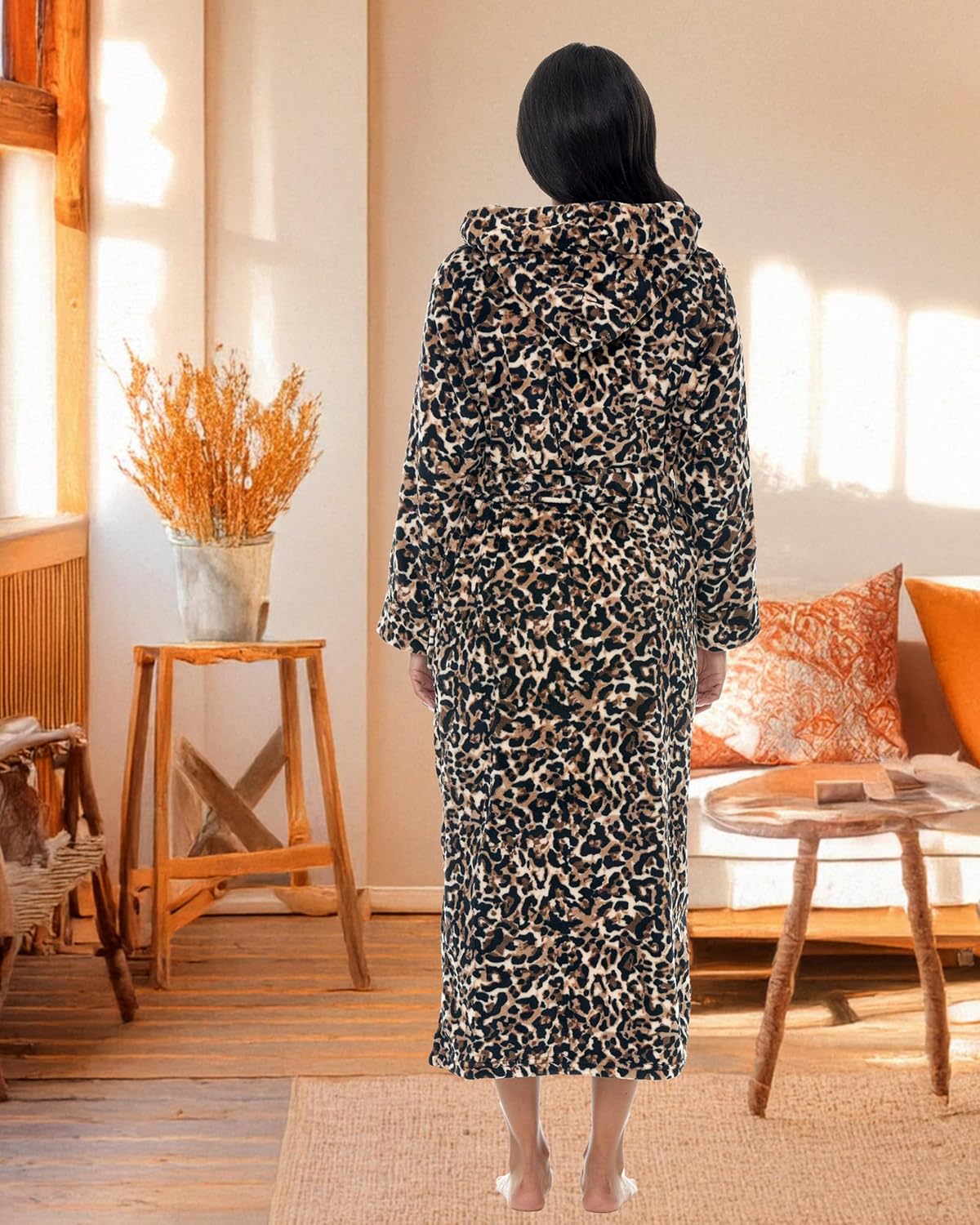 - THICKER - 2 times thicker than average fleece robe for women bathrobe. Hooded Bath robes female with male versions also available. The ideal, stylish housecoats for women for Fall and Winter. Size small, Desert Leopard robe by Alexander del Rossa.