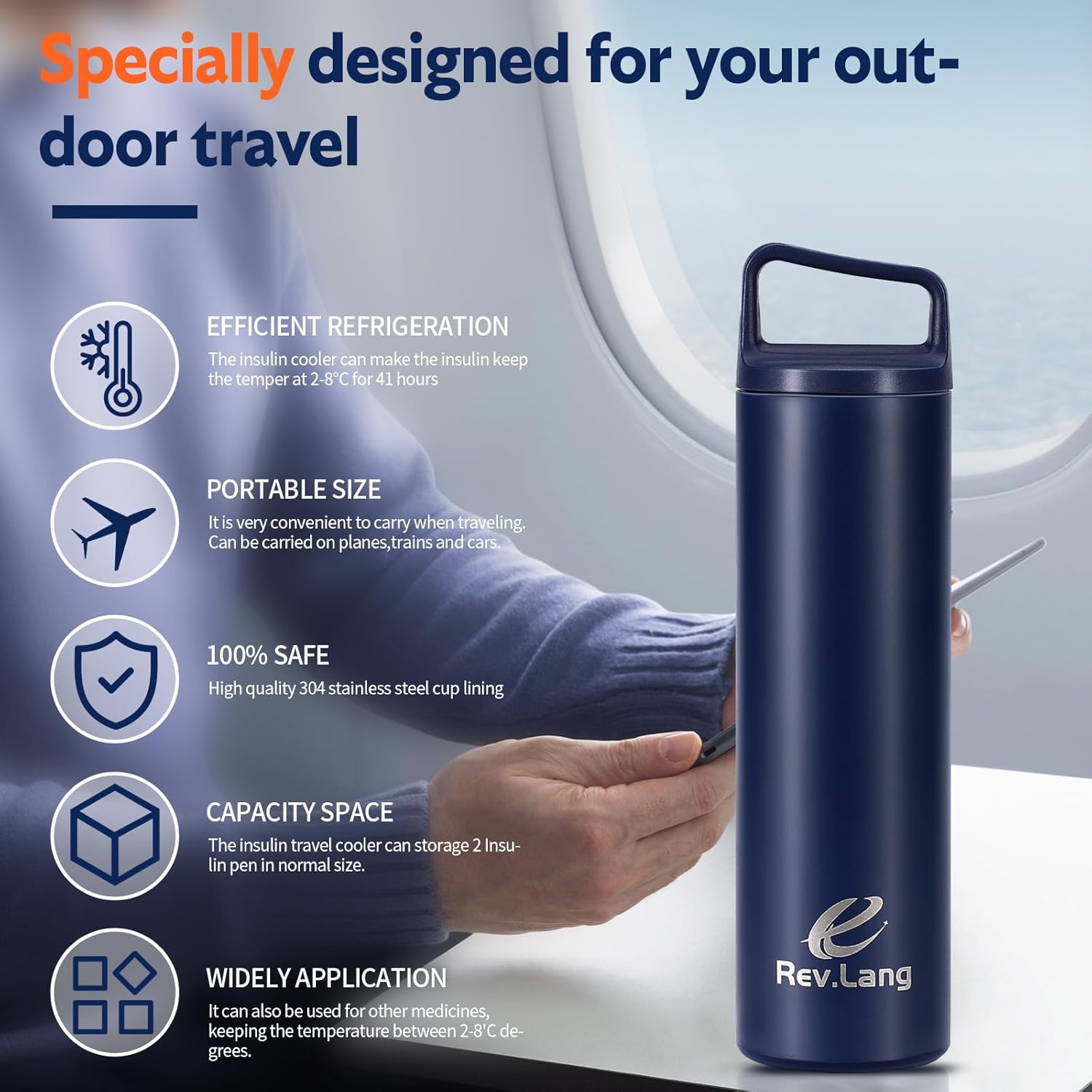 - Excellent Materials with Long-Lasting Insulation: Our cooler is made of food-grade 304 stainless steel, ensuring durability and safety. The vacuum insulation liner, using laser welding vacuum sealing technology, guarantees that your medications stay at the optimal temperature. Even in scorching weather up to 100°F (38°C), it can maintain a cool 36-46°F (2-8°C) for a staggering 32 hours. And during colder climates, it still acts as an insulator, protecting your medications. Look no further! Experience convenience, freedom, and peace of mind with Rev.Lang's Professional Insulin Cooler Travel Case.
