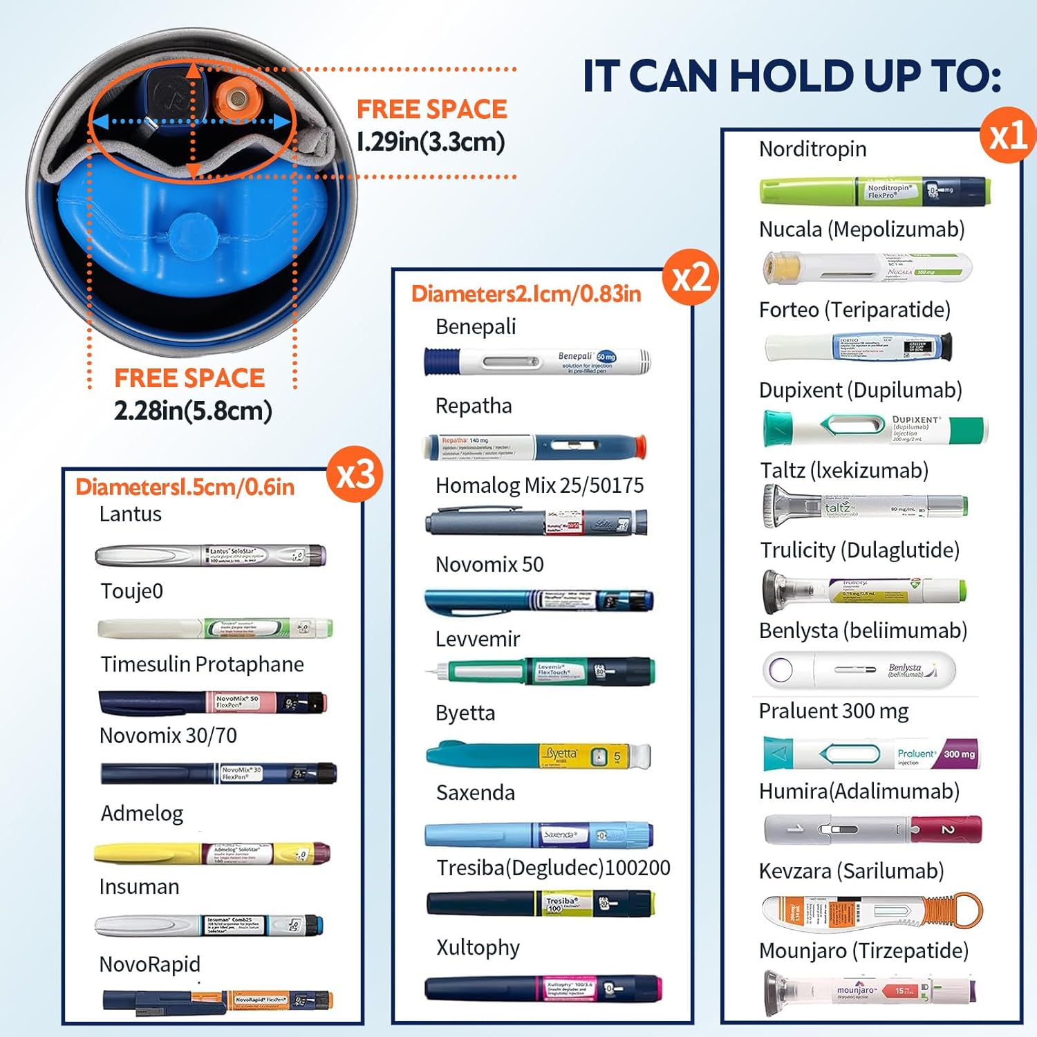 - TSA Approved: Travel worry-free! Our Insulin Cooler Travel Case is TSA approved, making it hassle-free to pass through security checkpoints and board the plane. It is also accepted as checked luggage. Whether you're commuting, going camping, hiking, or fishing, our cooler is your perfect companion for any outdoor activity. Please refer to the pictures to ensure your specific medication is on the list of compatible drugs. If not, our support team is happy to assist you in determining the capacity needed. Thank you for choosing Rev.Lang's Professional Insulin Cooler Travel Case!