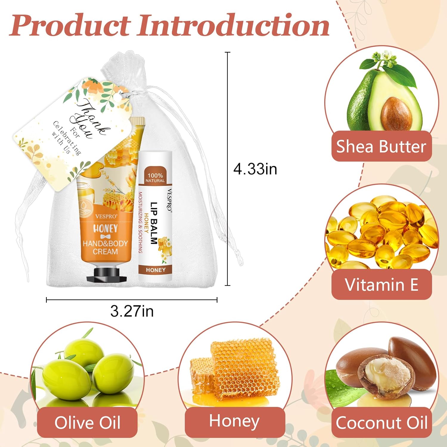 30 Sets Bulk Hand Cream and Bulk Lip Balm Gifts, Stocking Stuffers for Women, Wedding Favors for Guests with Thank You Card and Organza Bags, Christmas Gifts, Employee Appreciation Gifts