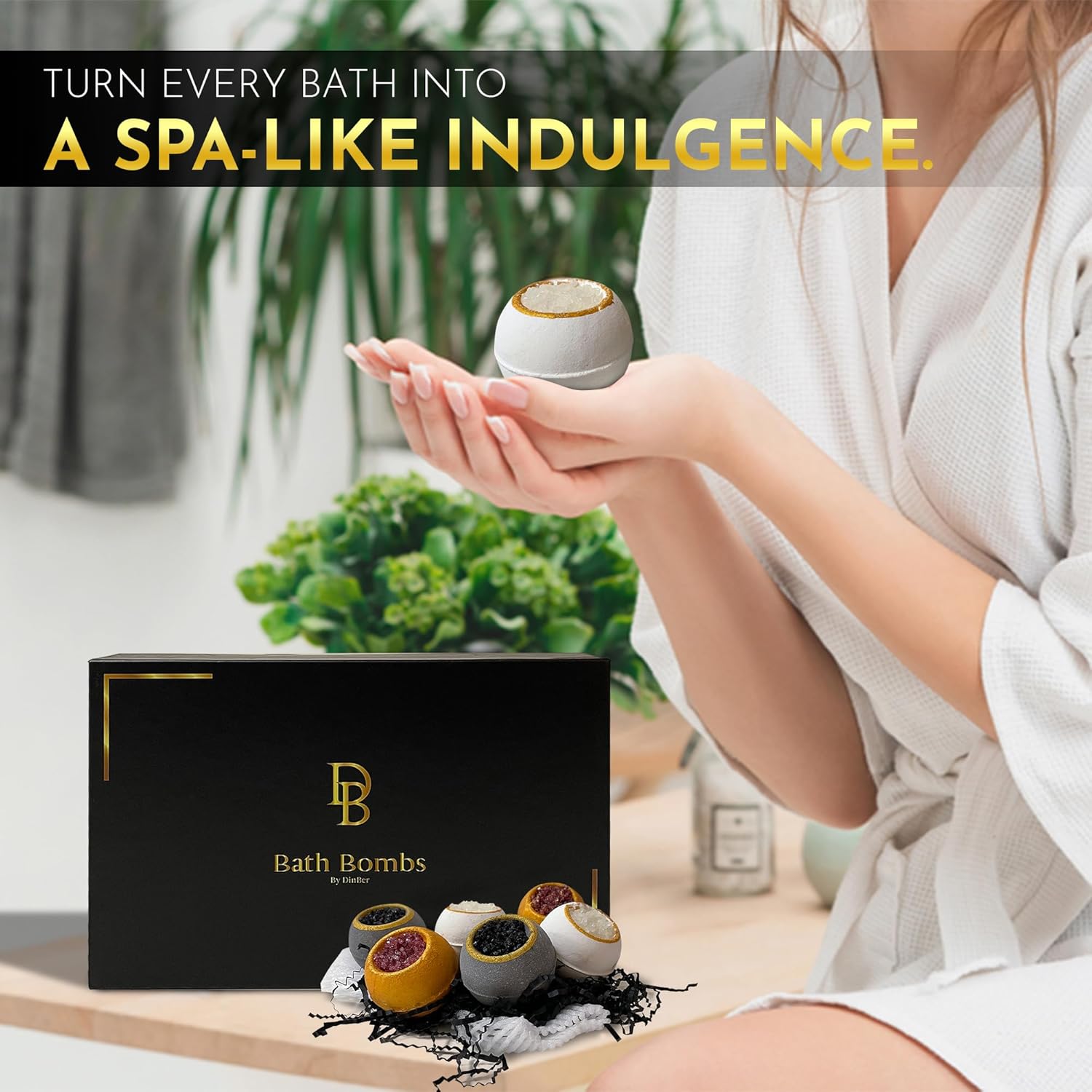 - 🖤 DINBER 6-PIECE LUXURY BATH BOMB SET – Indulge in the ultimate self-care ritual with our lush, non-toxic bath bomb pack. This beautifully wrapped set includes six organic, aromatherapy-infused bath bombs crafted for women, men, girls, boys and even toddlers with sensitive skin. Each bomb transforms your bath into a soothing escape, releasing bubbles, essential oils, and natural ingredients that nourish and relax from head to toe.