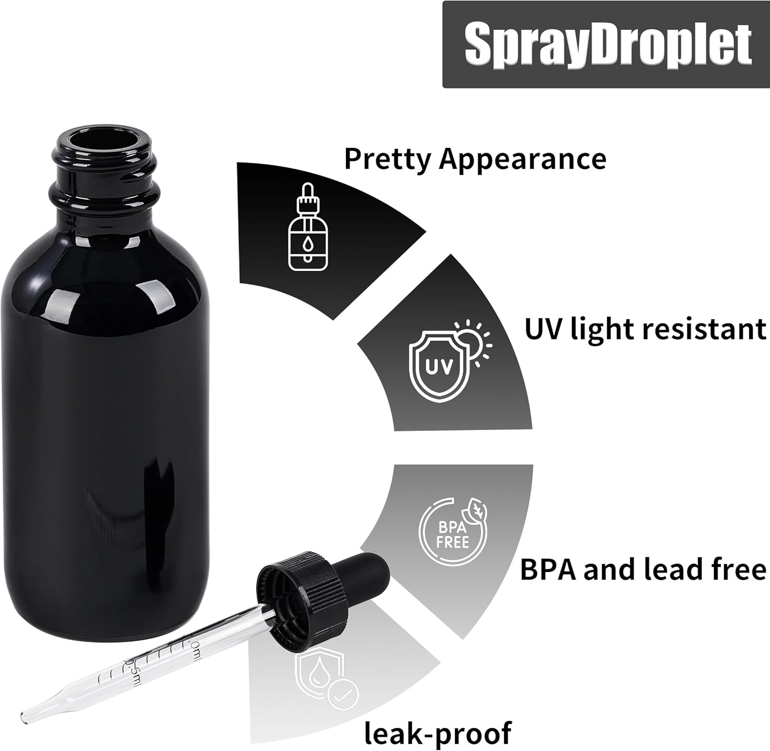 48 Pcs, 2oz Glass Dropper Bottle, Leakproof Tincture Bottles with Dropper, Black Reusable Eye Dropper Bottle, for All Kinds of Liquids (Black,2oz-48pcs)