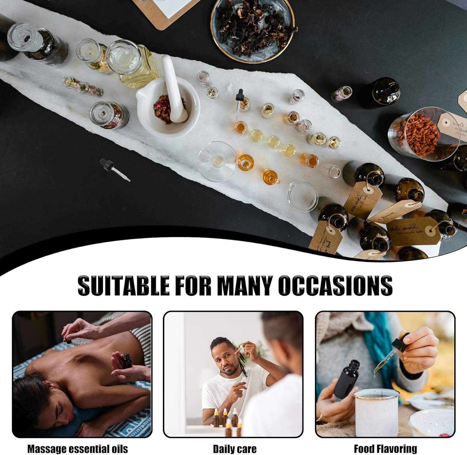 - 🧴【Precision Measurement Dropper】Glass dropper bottle feature pipettes with a 1 ml capacity, clearly marked scales, and excellent suction. These droppers ensure accurate measurement and efficient liquid extraction, preventing waste and offering a convenient, precise way to handle oils and other liquids