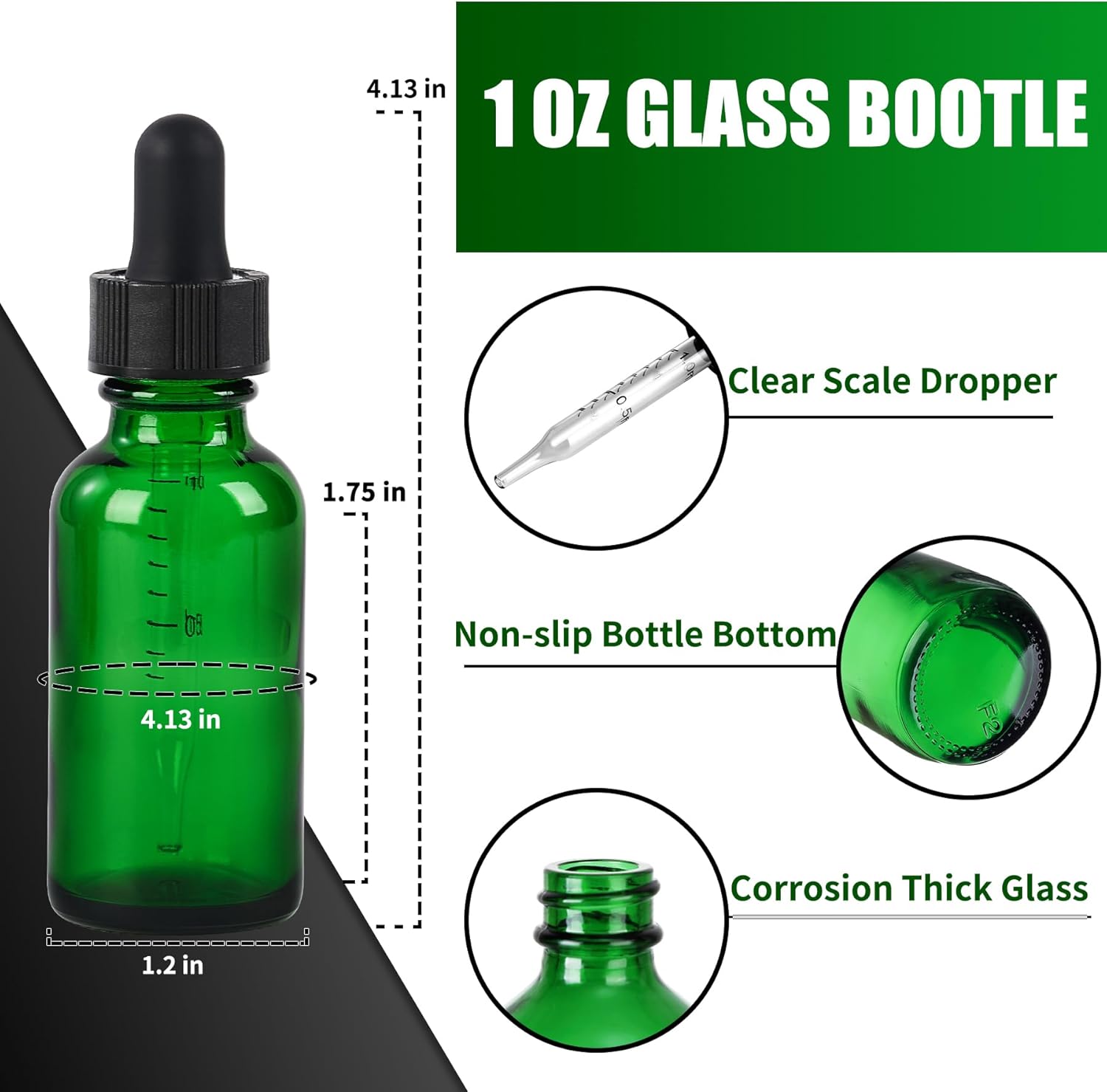 48 Pcs, 1oz Glass Dropper Bottle, Leakproof Tincture Bottles with Dropper, Green Reusable Eye Dropper Bottle for All Kinds of Liquids (Green, 1oz-48pcs)