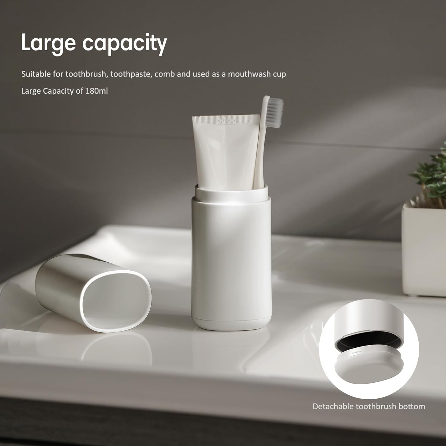 - EFFICIENT ORAL CARE COMPANION: Our travel toothbrush case with a built-in mouthwash cup ensures a complete oral hygiene routine while traveling. Keep your toothbrush and toothpaste organized and conveniently accessible wherever your travels take you. NOTE: Toothbrush holder case does not come with toothbrush, toothpaste or towel.