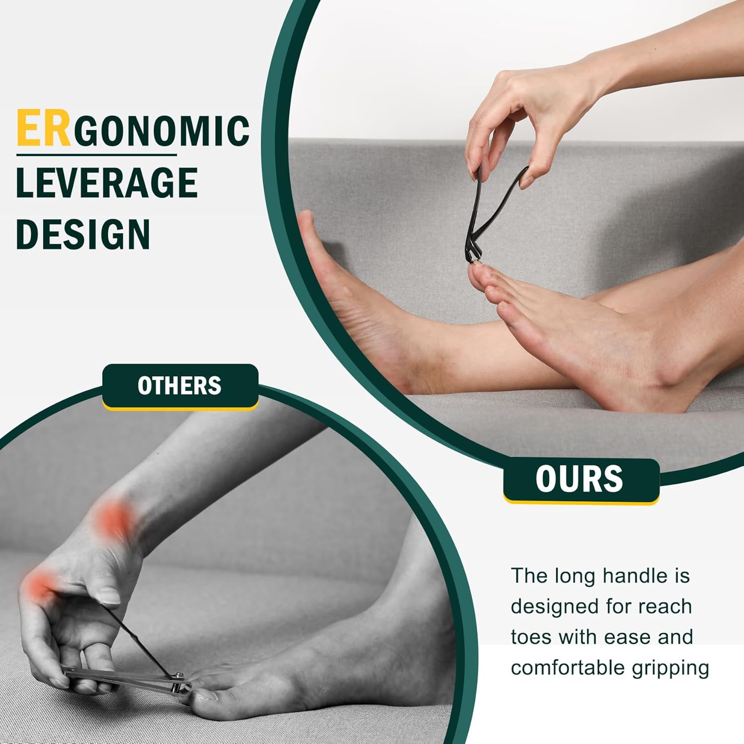 - 🎁Comfortable and Clean - Comfort is paramount, especially for seniors. FVION toe nail clippers feature long and wide handles with an ergonomic design, ensuring a comfortable grip and effortless trimming. Plus, the built-in nail catcher prevents clippings from making a mess.