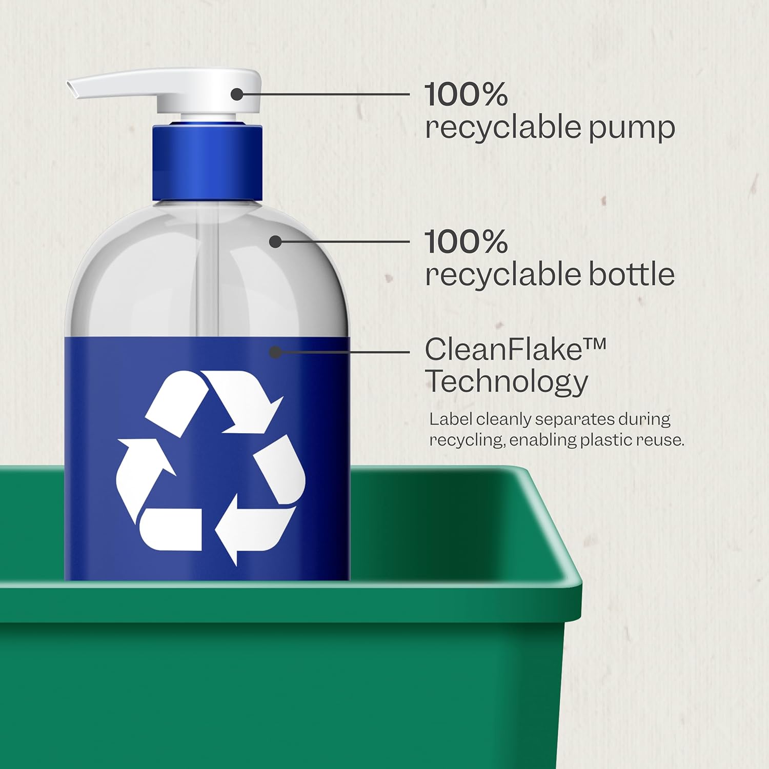 - At Renpure, we believe that everyone deserves beautiful hair, without compromise. Our pump and bottle are both 100% recyclable, making sustainable choices easier. After rinsing, drop the whole package into the recycling bin.