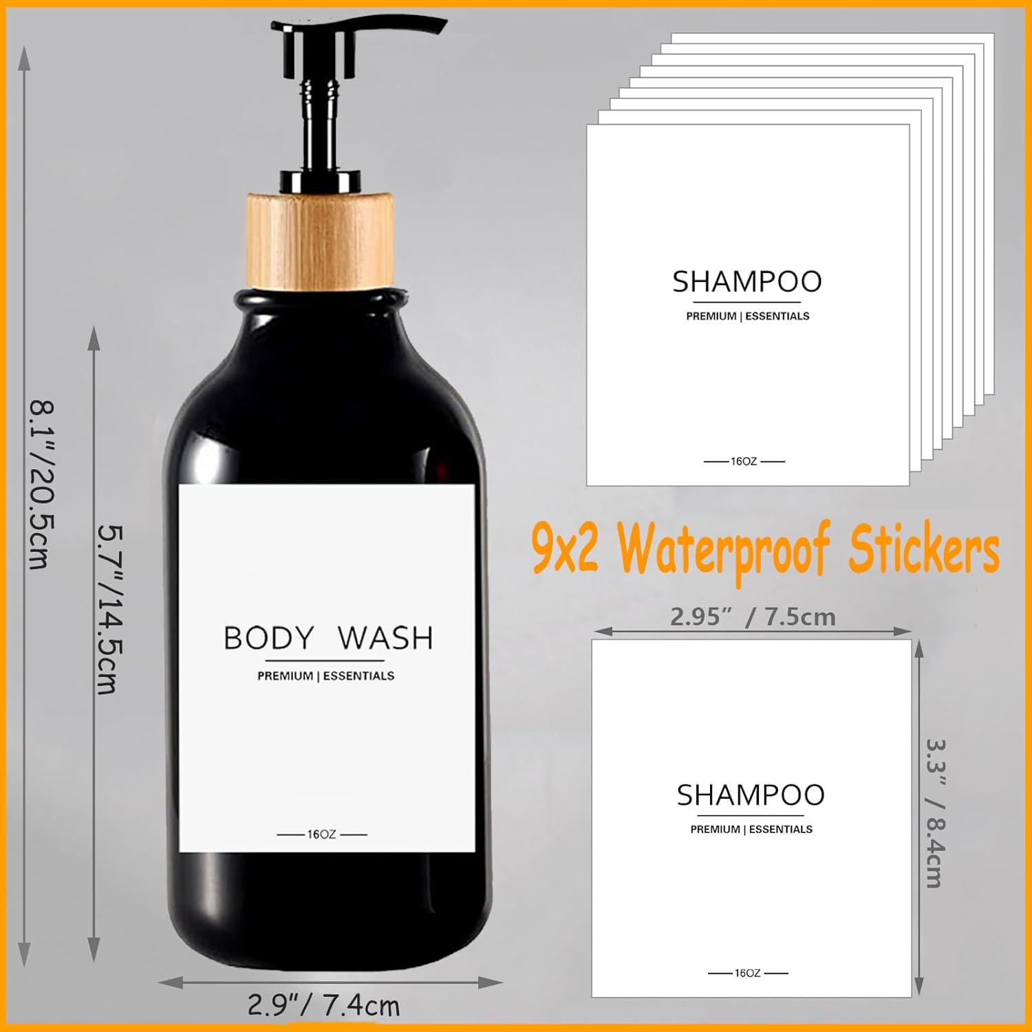 - Waterproof Labels β Waterproof Labels for shampoo, conditioner, and shower gel are attached to bottles for easy identification, waterproof labels do not fall off or peel off, and can be used in a humid environment such as a bathroom and sink. 9x2 Adjustable and Removable Stickers are beautifully designed to easily match any modern bathroom decor.