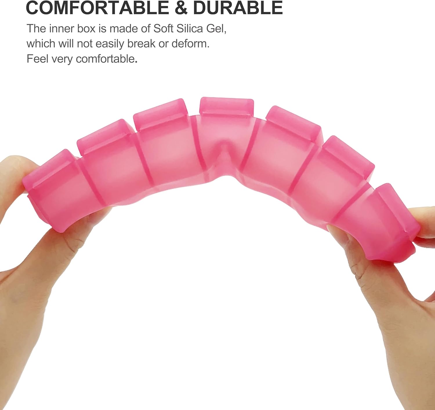 - BENEFIT TO PEOPLE WHO LIKE SILICONE! -- The 7-day Silicone pill case is made of pure food-grade silica gel, which is very soft, wear-resistant and easy to clean. Using it can bring you a good mood all day! (Overall dimensions:)