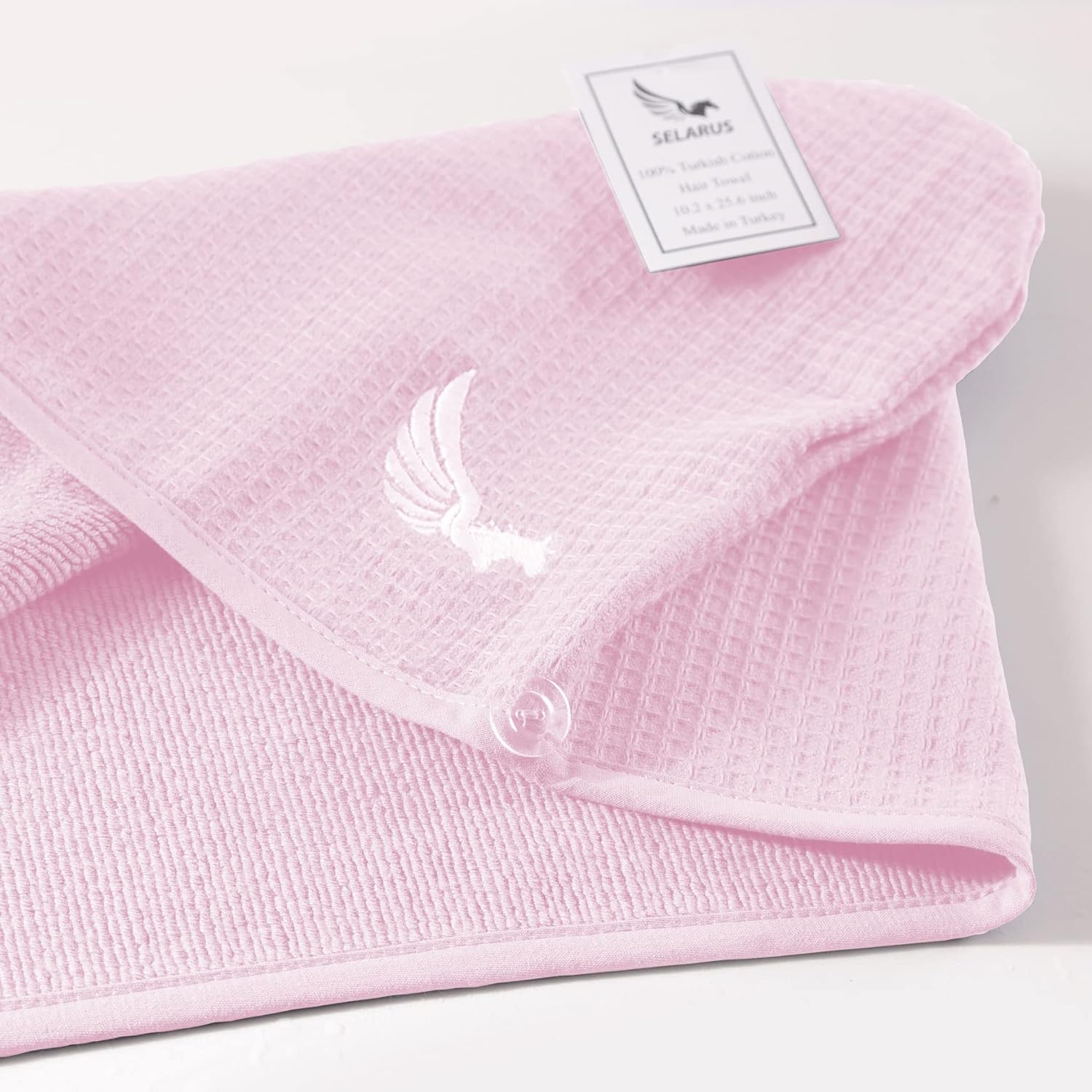 - BEST FOR ALL HAIR TYPES: 26x10 inches. Easy to wrap and use.You can use while doing MakeUP, work or getting dressed. Protect your hair health. Great for home, travel, workout or pool. 100% Cotton hair towel wrap for curly,wavy,long or thick hair. UNIQUE LOOP SYSTEM Selarus hair towels has banded edges and durable unique loop systems for last longer than elastic loop. Our towels are more durable,super absorbent and last longer than other towels