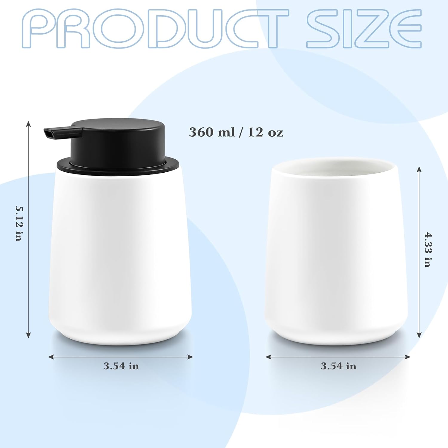 Ceramic Foam Soap Dispenser 2 Pack, 12oz White Lotion Hand Sanitizer Soap Dispenser with Easy-to-Press Pump for Bathroom & Kitchen Countertop Refillable