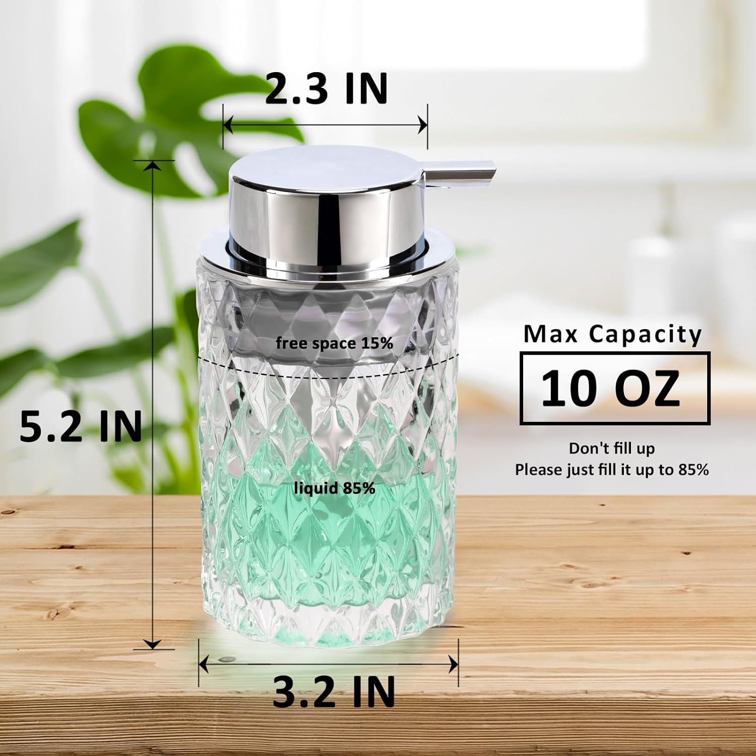 Bathroom Glass Soap Dispenser with Durable Rust-Proof Plastic Liquid Pump (Can't Foam) Hand Lotion Dispenser Antislip Shampoo Kitchen 10oz