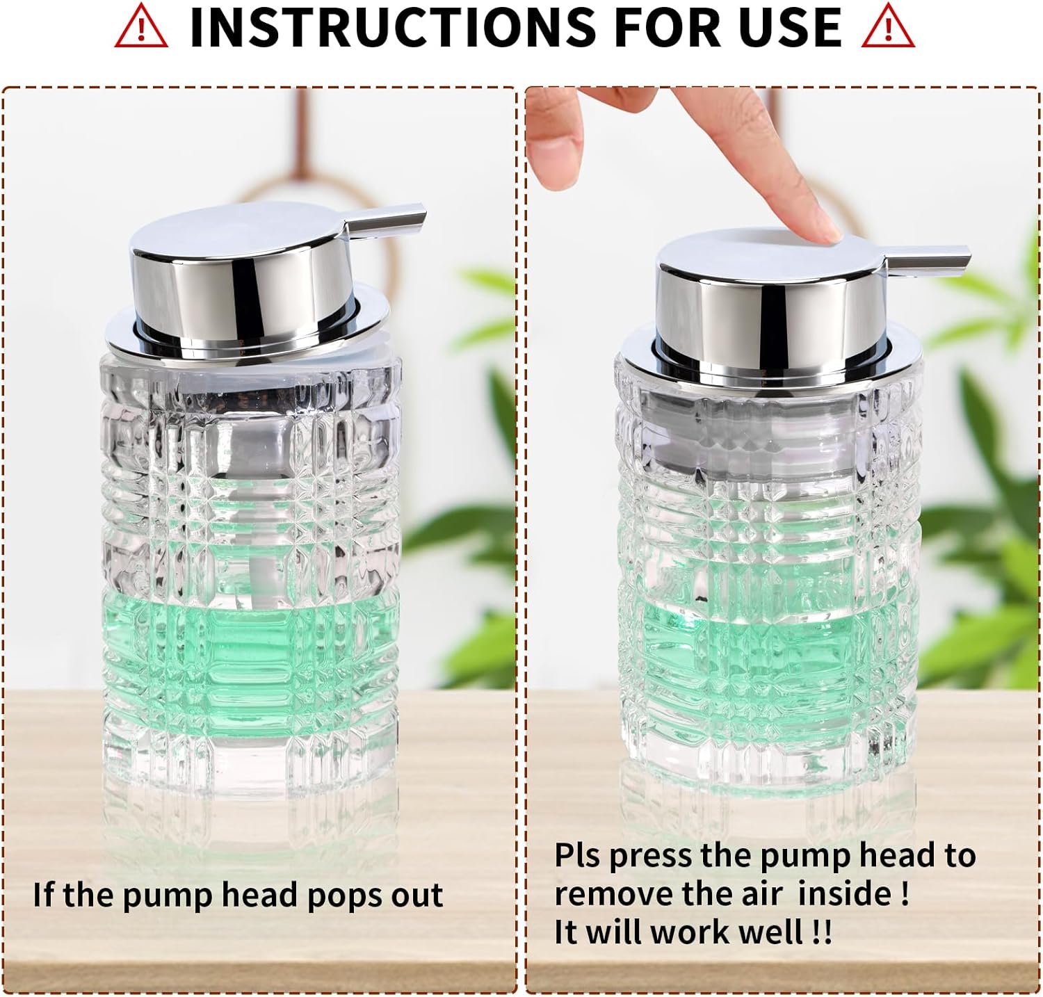 - Easy-to-Press-Design - The Glass Hand Soap Dispenser uses a great quality pump made of premium Glass, we can easily squeeze out the liquid, the nozzle down is not easy to leave excess soap.