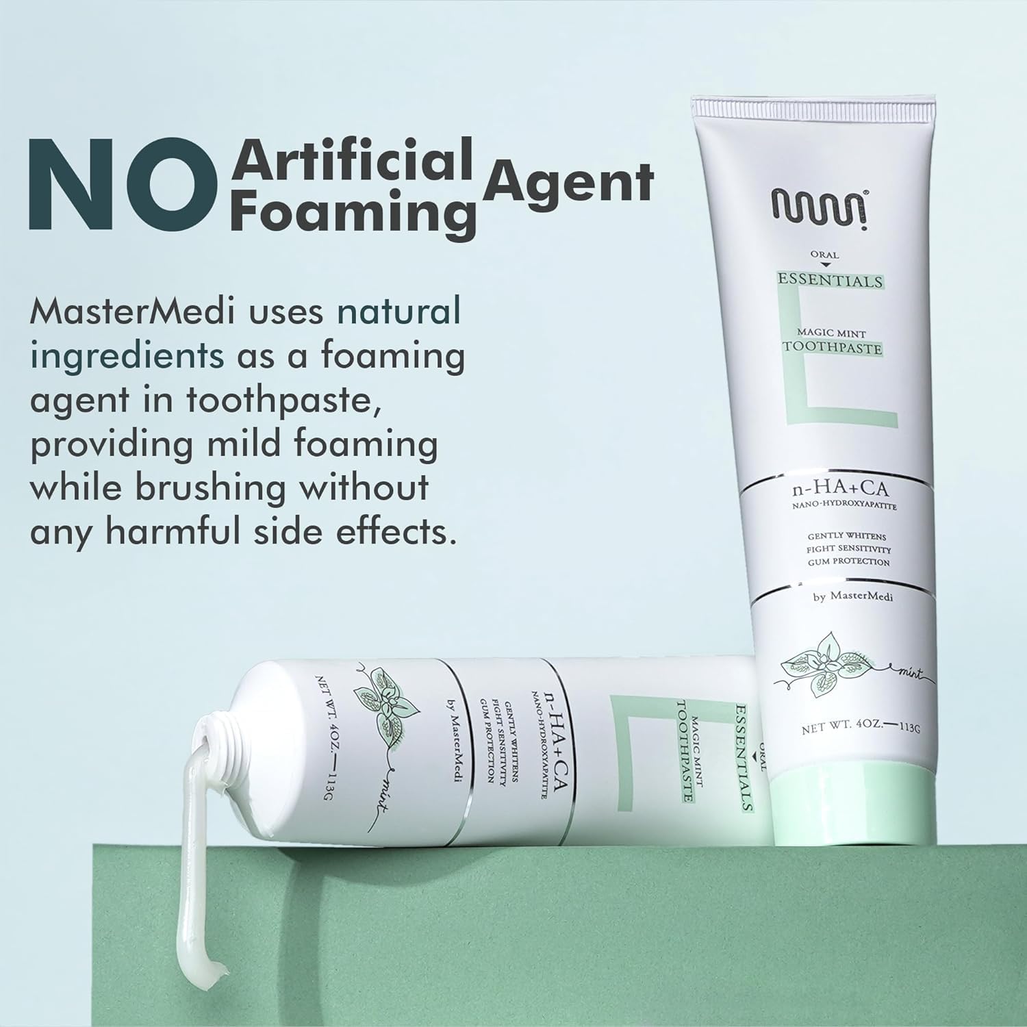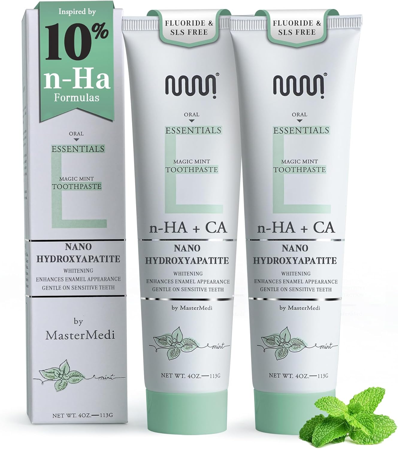 MasterMedi Nano Hydroxyapatite Toothpaste (Inspired by 10% nHA Formulas), Fluoride-Free, Whitening, Sensitive Teeth Care, Enamel Support, SLS Free, Xylitol, Magic Mint, 4 Oz (Pack of 2)