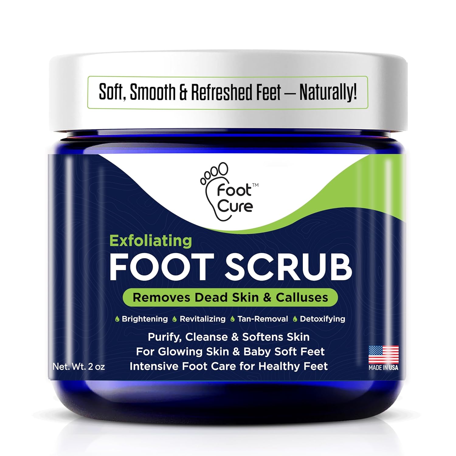 - EXFOLIATING FOOT SCRUB & PUMICE STONE POWDER – Foot Cure’s Eucalyptus Foaming Foot Scrub gently buffs away dry skin with natural pumice stone powder. Perfect for use as a shower foot scrub, a pedicure essential, or to maintain smooth feet between salon visits