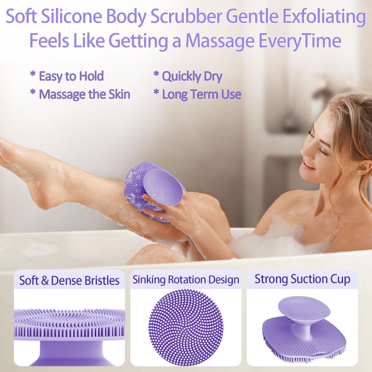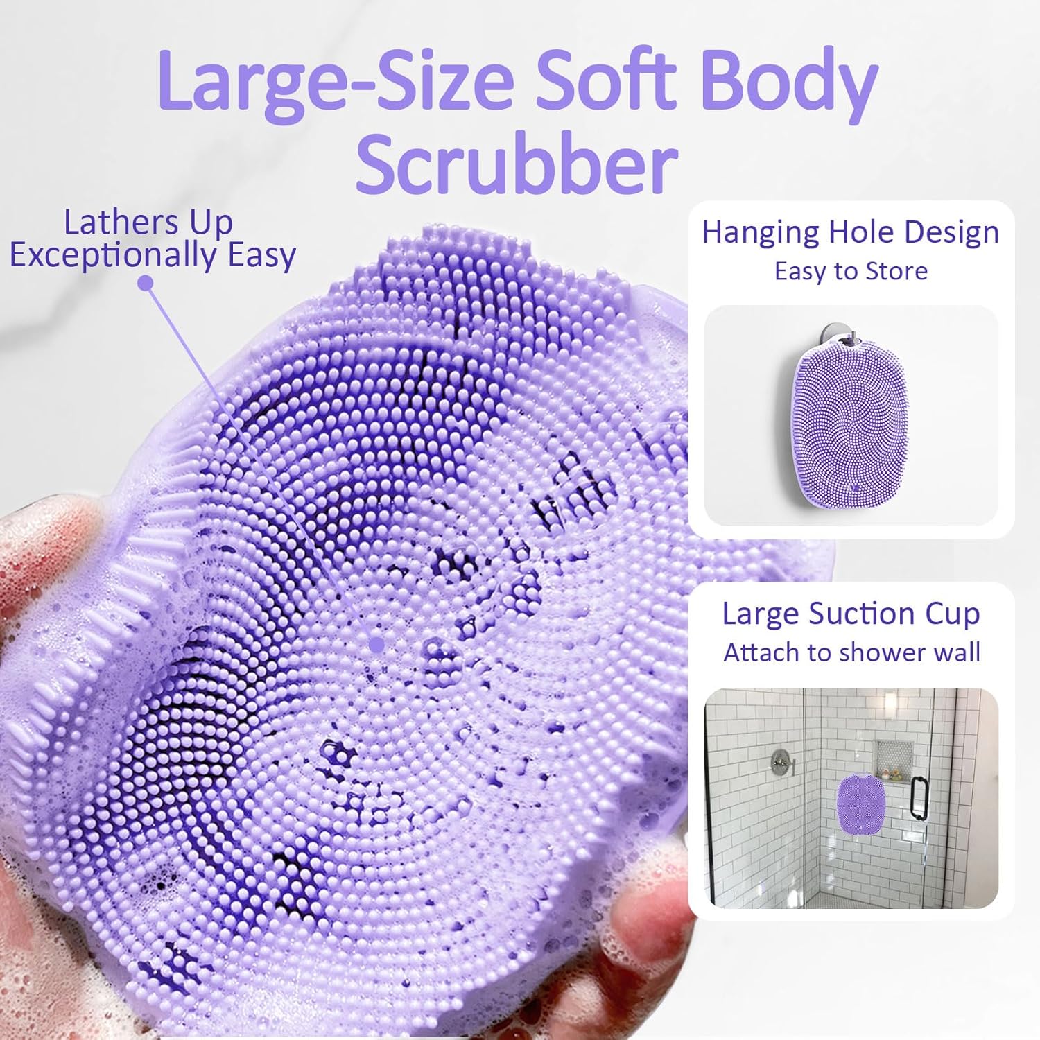 Soft Silicone Body Scrubber, Gentle Like a Hand Exfoliating Your Skin and Build Up Lather Easily, Back Large Suction Cup Easy to Store, Long-Lasting & Deep Clean (Purple)
