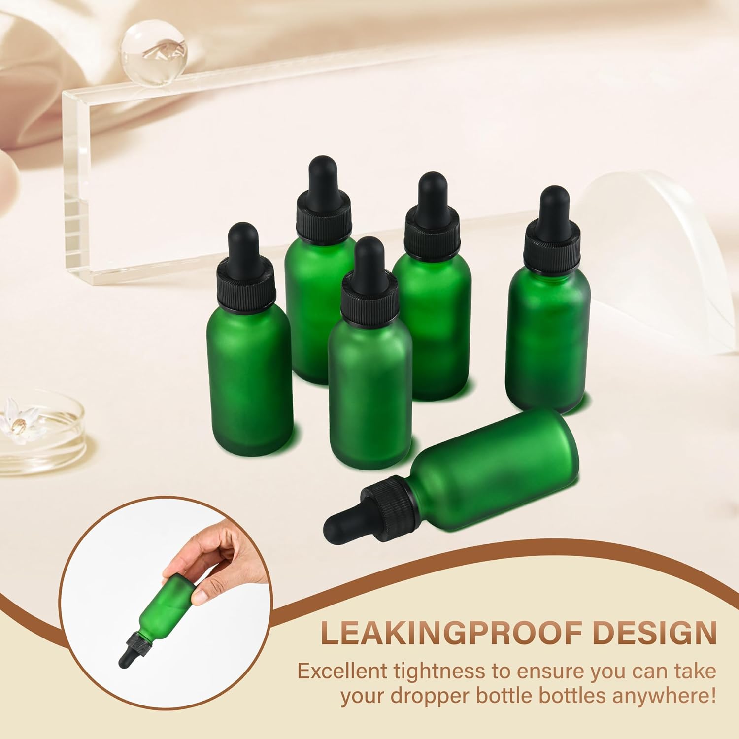 6 Pcs, 1oz Dropper Bottle, Green Glass Eye Dropper Bottle, Tincture Bottles with Dropper, Pretty Finish, Leak-Proof Design, Stronger Suction for All Kinds of Mixed Liquids