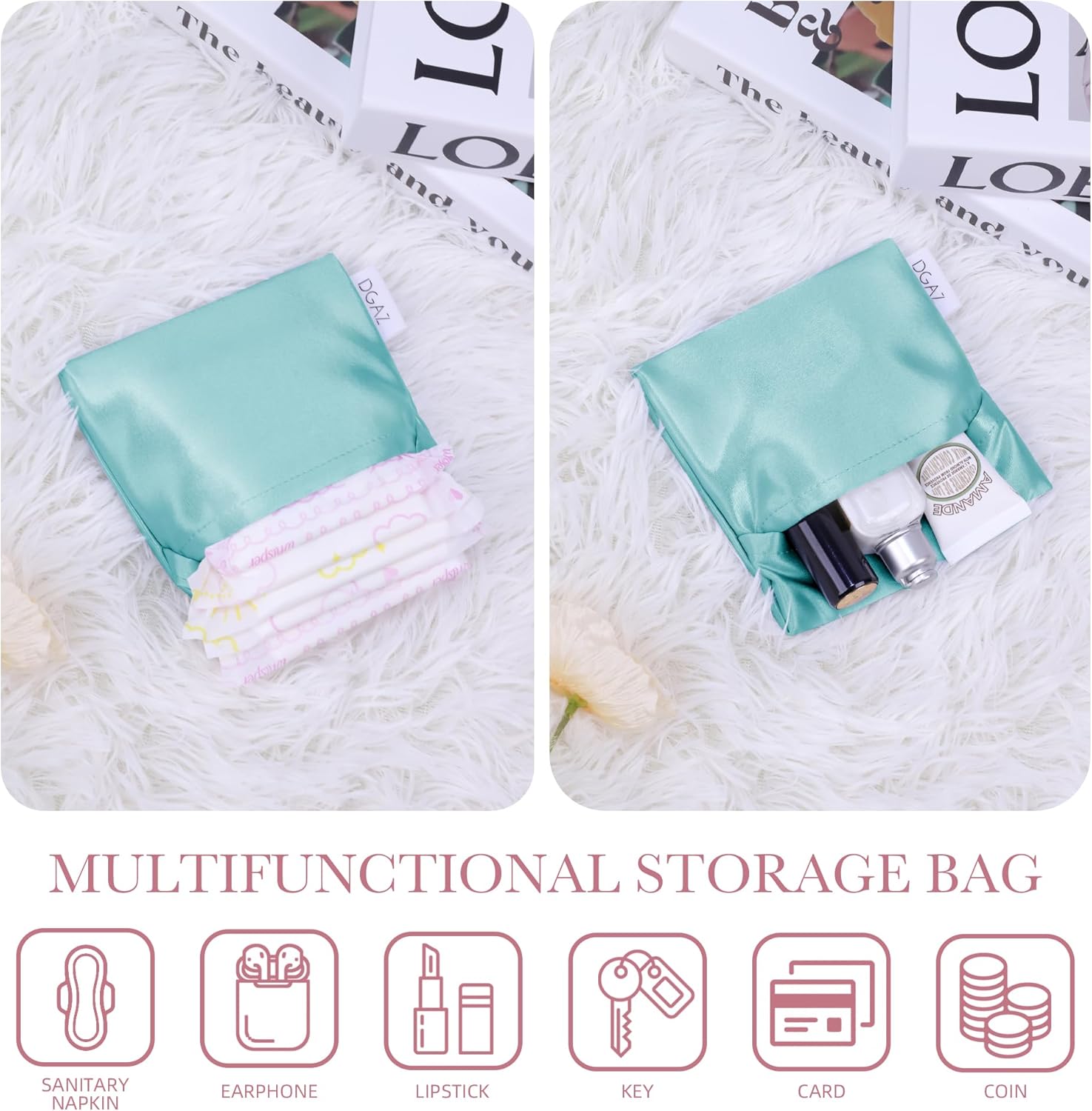 DGAZ Silk Sanitary Napkin Storage Bag, Period Bag for Teen Aged Girls, Portable Period Bag for Panty Liners/Menstrual Cup/Small Tampons,Mini Makeup Bag for Purse(Blue Zephyr)