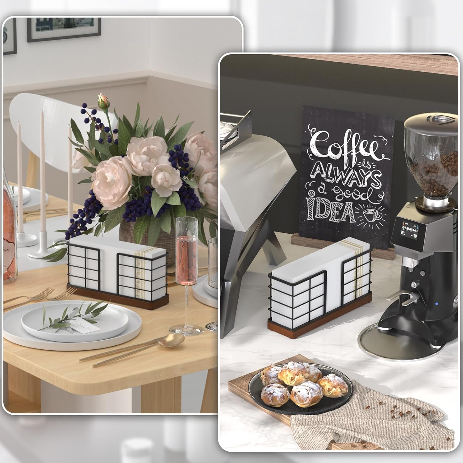 - Upright and Slim Style: Most paper napkin holders are flat, countertop types, which take up room. This takes up less space, so if you don't have much counter space, this is a perfect option