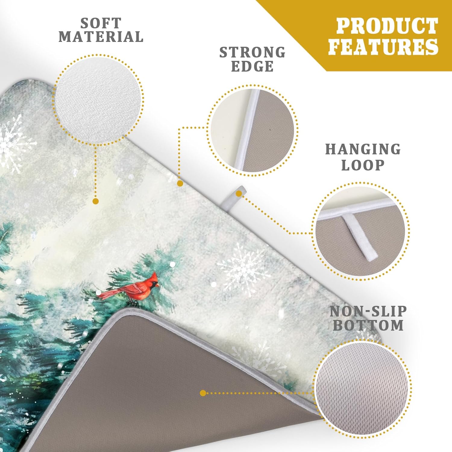 - 【Easy to Storage】This cardinal bird design drying mat with hang rope, soft and foldable, durable, easy to storage it by hanging or folding it up in a drawer or tuck it elsewhere. Perfect for tight spaces like campers, boats and cottages where having a dual purpose item will come in handy.