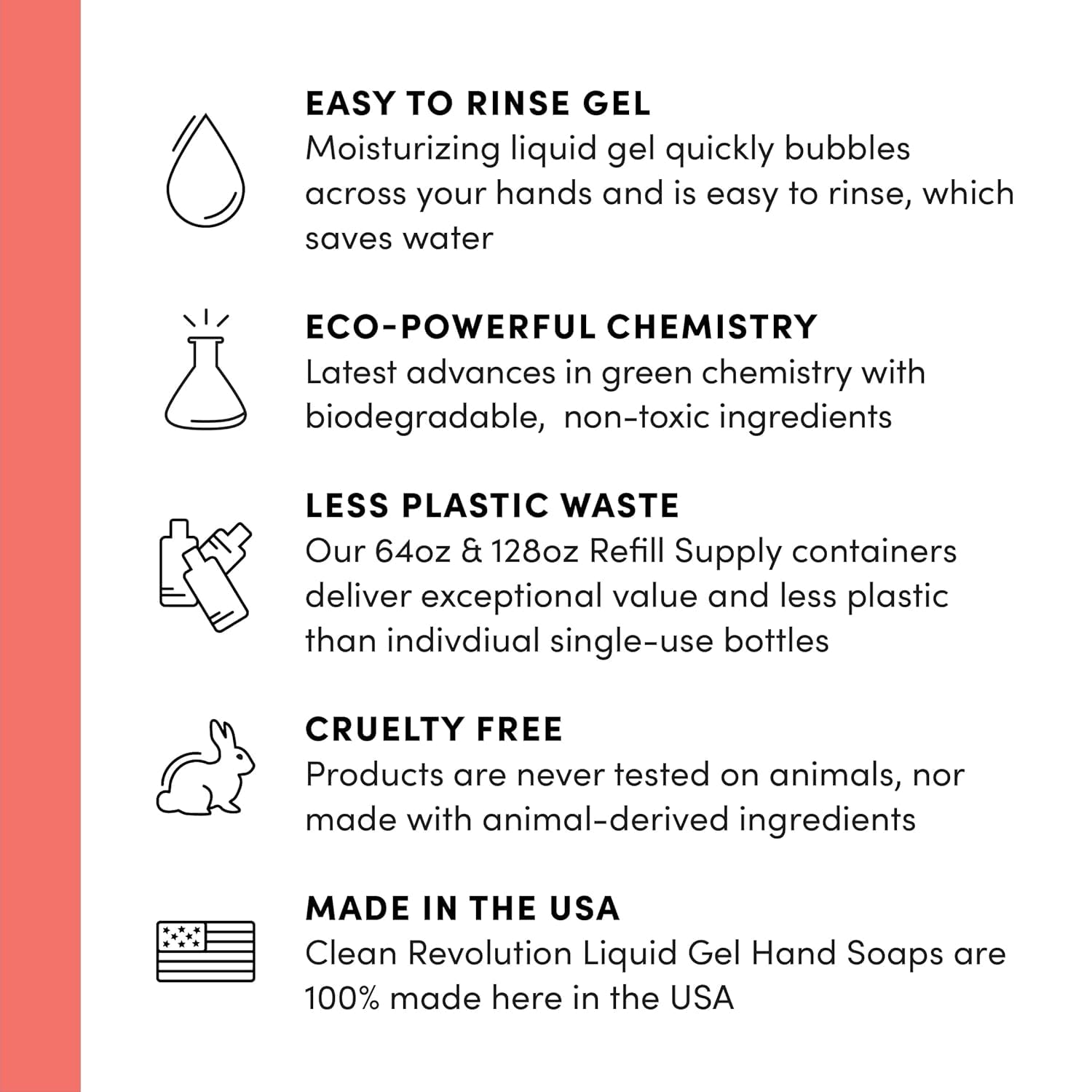 - Made in the USA: All Clean Revolution Liquid Gel Hand Soap products are 100% made here in the USA