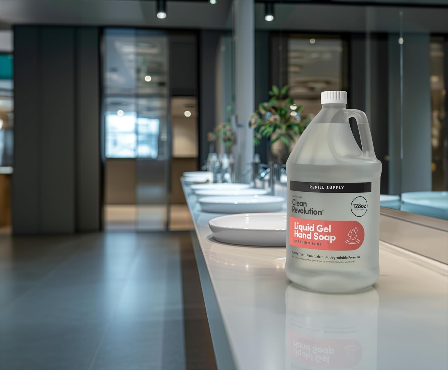 Clean Revolution Liquid Gel Hand Soap, Silky Rich Liquid, Quick Lather, Fast Rinsing, (Geramium Mint) 128 Fl Oz, 4 Pack - Made in USA