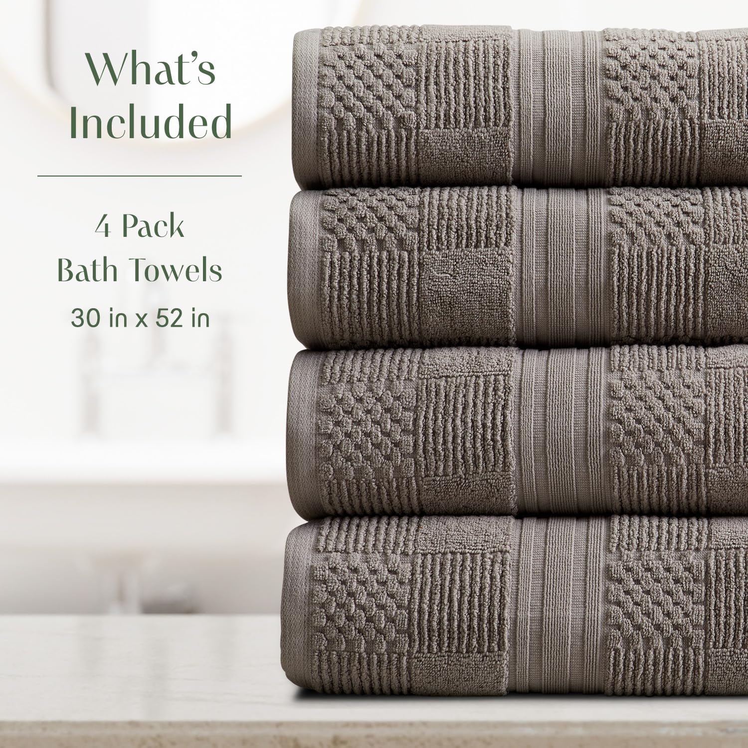 Springtree Home 100% Cotton Bath Towel Set of 4 | Grey Towels | Geometric Textured Design | Absorbent & Quick-Dry | 4 Bath Towels | Oeko-TEX® Standard 100 Cotton | Myla Collection - Frost Grey