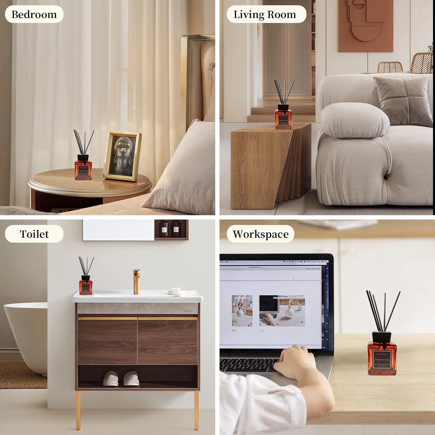 - LONG-LASTING USE:The more diffusion sticks you put in, the stronger the fragrance. The fragrance spreads as the stick absorbs the essential oils. If the fragrance is not strong enough, you can replace the stick and continue to use it, or turning the original stick upside down