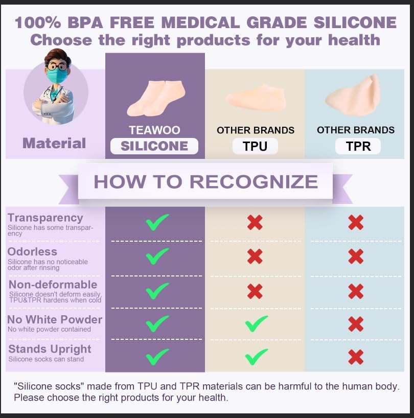 - 【SUPERIOR MOISTURE LOCKING POWER】TEAWOO silicone socks for women provide intensive moisturizing care, effectively preventing cracked feet and softening dead skin. Continuously moisturize the skin, giving it a natural healthy appearance, nourishing and smoothing it, and increasing elasticity.