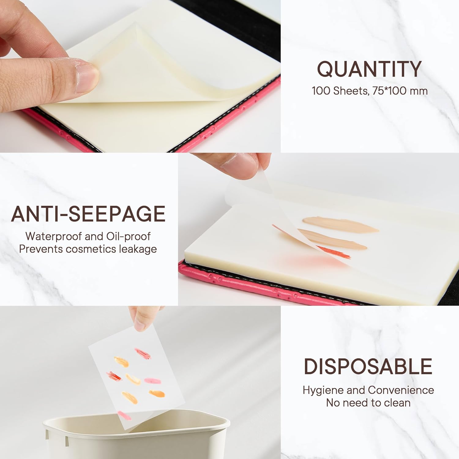 - For a Seamless Beauty: With Alyfini's makeup mixing palette tray kit, you'll never have to worry about dirty hands or messy cleanup again. The anti-penetration transparent film sheets clearly display makeup colors, making it easy to compare them with your skin tone. Say goodbye to the hassle of mixing on the back of your hand, which can wastes product and is hard to clean. Each disposable paint tray palette paper offers a fresh start, so you can focus on achieving a flawless, clean look every time