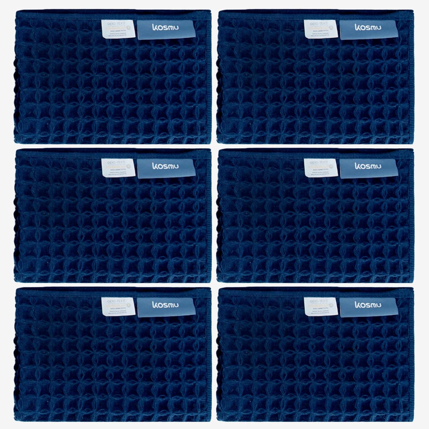 Luxury Japanese Cotton Silk Waffle Bath Towel | Plush, Absorbent, and Quick Dry (Ocean Blue, Face Towel (6 Pack))