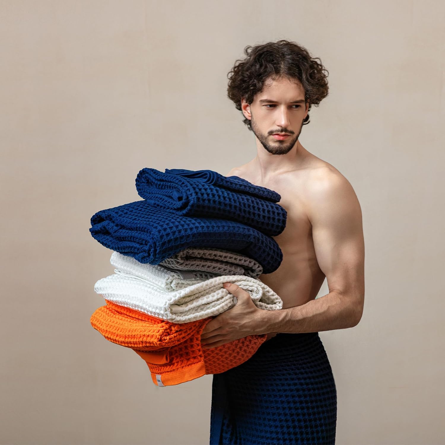 - A dry towel is a clean towel. The airy waffles effectively prevent the multiplication of odor caused by bacteria and fungus. You will never reach out to a wet, musty towel after a shower anymore.